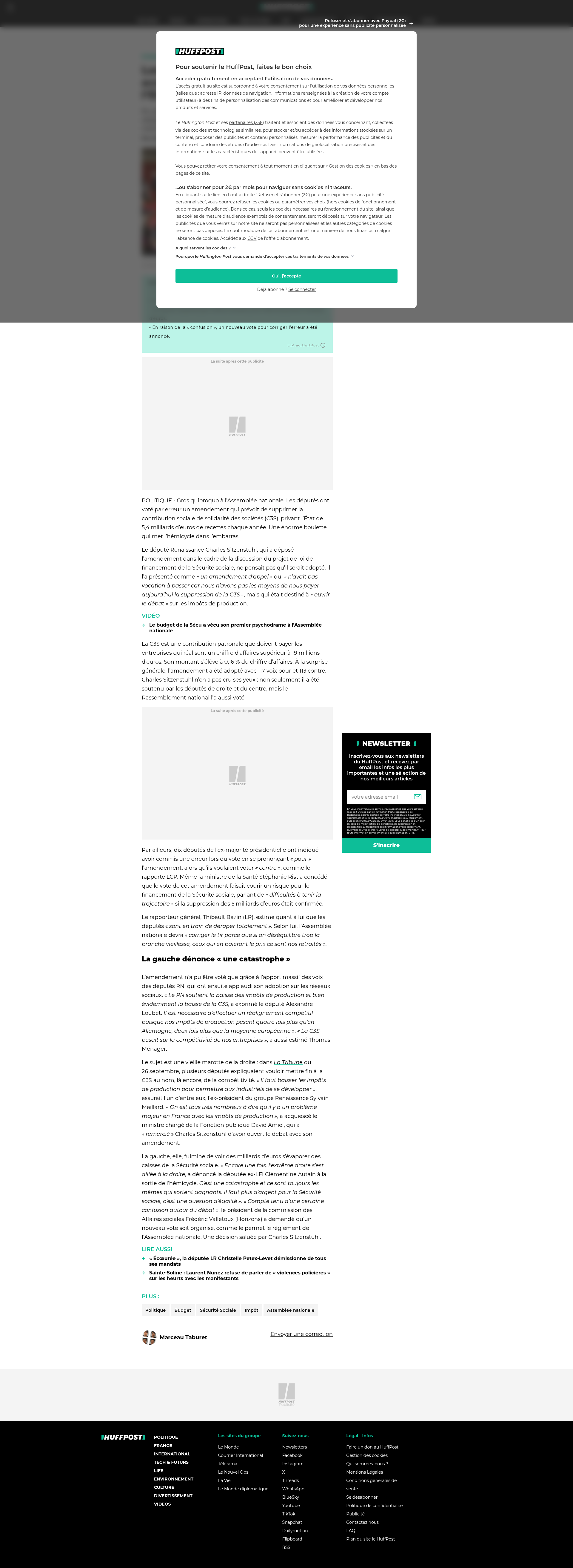 Les députés suppriment par erreur une taxe qui prive l’État de 5 milliards d’eurosEn plein débat budgétaire, un amendement a été adopté à la surprise générale par l’Assemblée nationale. Certains demandent un nouveau vote.PNGPDF