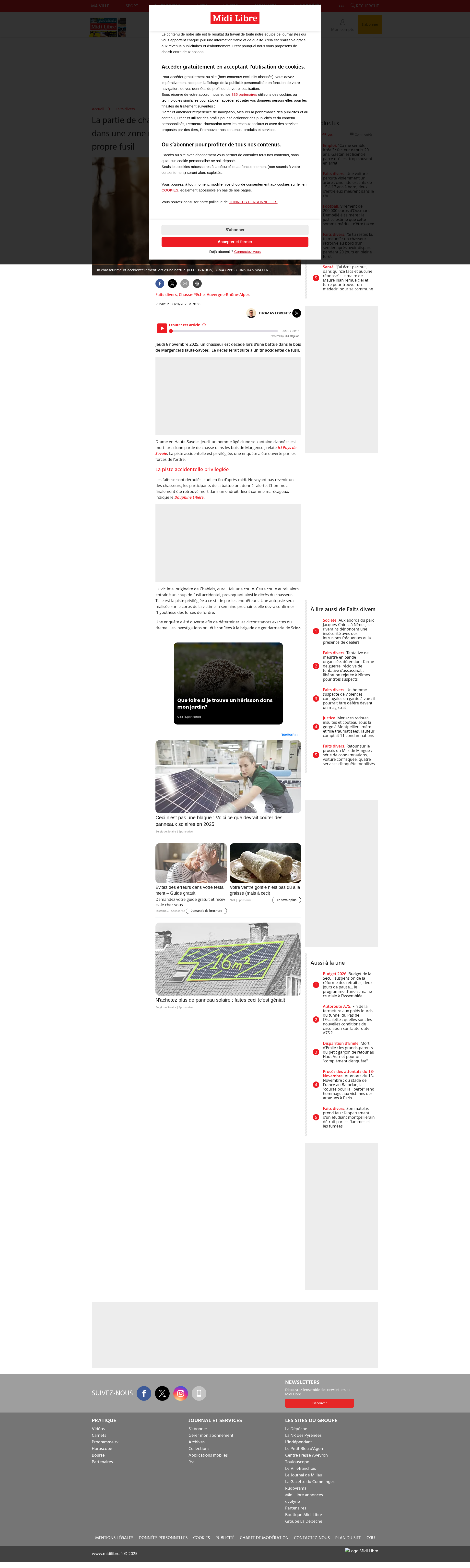 La partie de chasse vire au drame : un homme glisse dans une zone marécageuse et se tire dessus avec son propre fusilJeudi 6 novembre 2025, un chasseur est décédé lors d’une battue dans le bois de Margencel (Haute-Savoie). Le décès ferait suite à un tir accidentel de fusil.PNGPDF