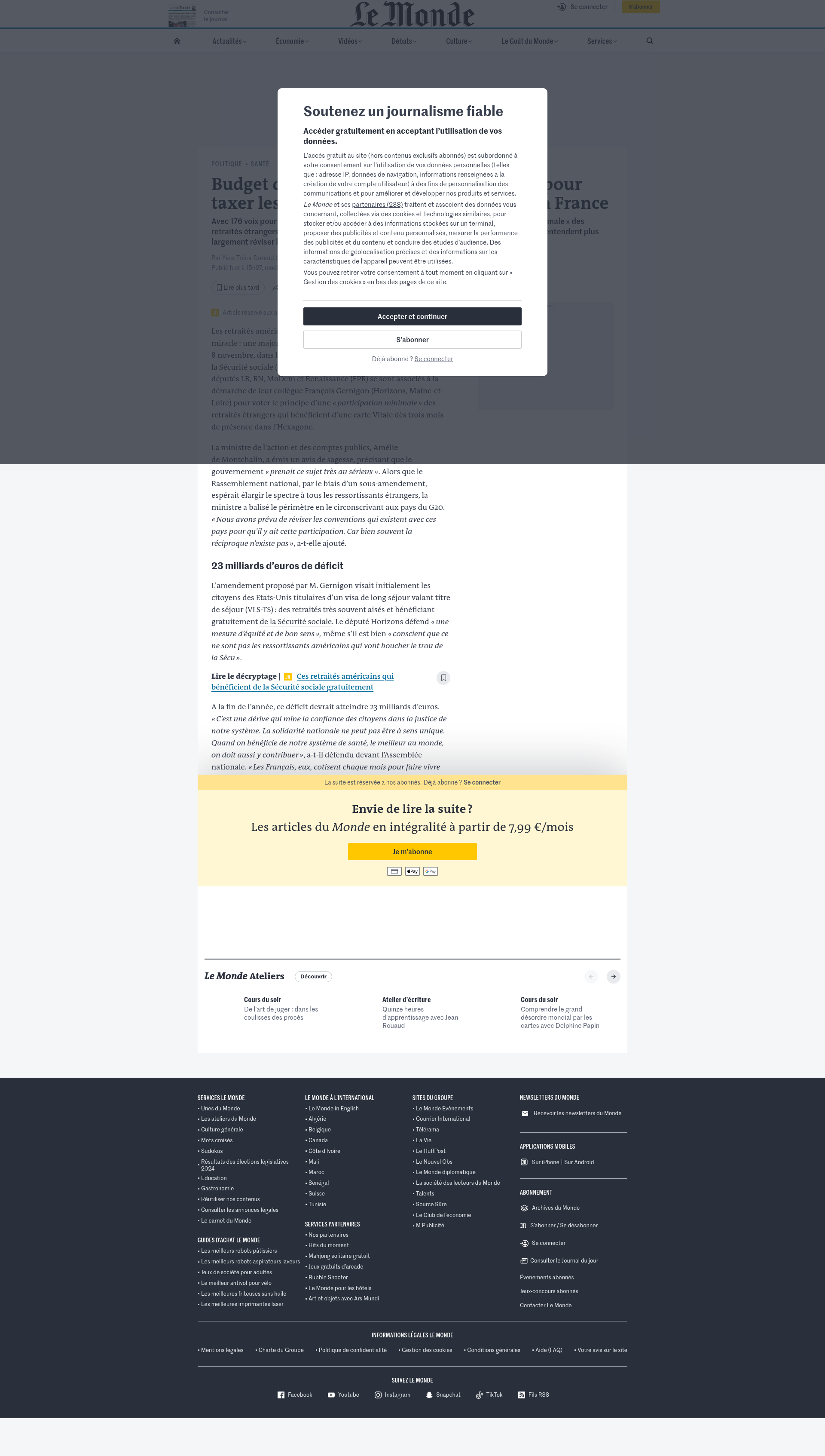 Budget de la « Sécu » : les députés votent pour taxer les retraités américains résidents en FranceAvec 176 voix pour et 79 contre, les députés ont approuvé le principe d’une « participation minimale » des retraités étrangers qui bénéficient d’une carte Vitale dès trois mois de présence en France, et entendent plus largement réviser les conventions bilatérales qui existent entre la France et les pays du G20.PNGPDF