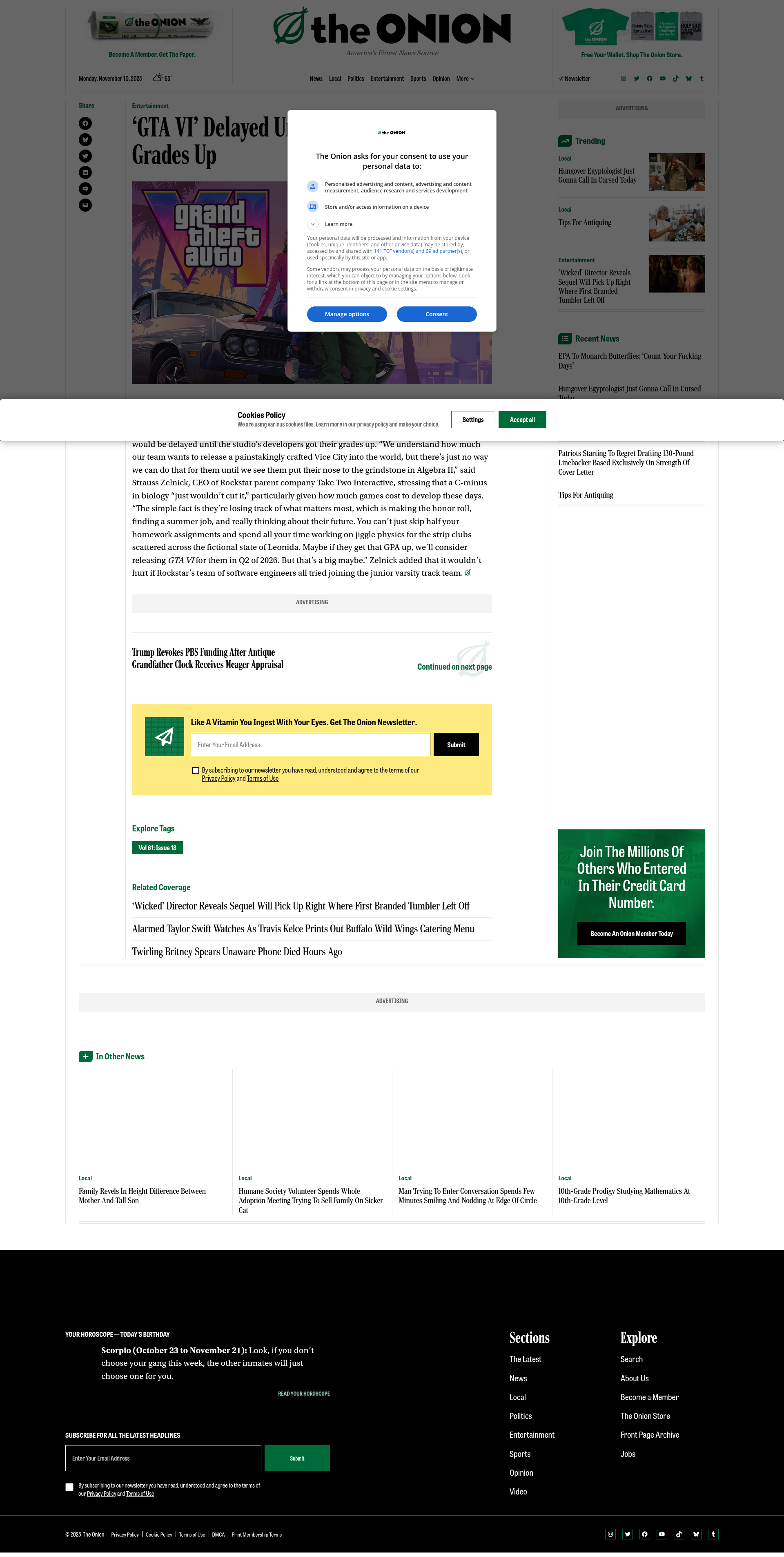 ‘GTA VI’ Delayed Until Developers Get Grades UpEDINBURGH, SCOTLAND—Scolding thousands of employees for letting themselves become distracted from their schooling, Rockstar Games announced Friday that Grand Theft Auto VI would be delayed until the studio’s developers got their grades up. “We understand how much our team wants to release a painstakingly crafted Vice City into the world, but there’s just no way […]PNGPDF