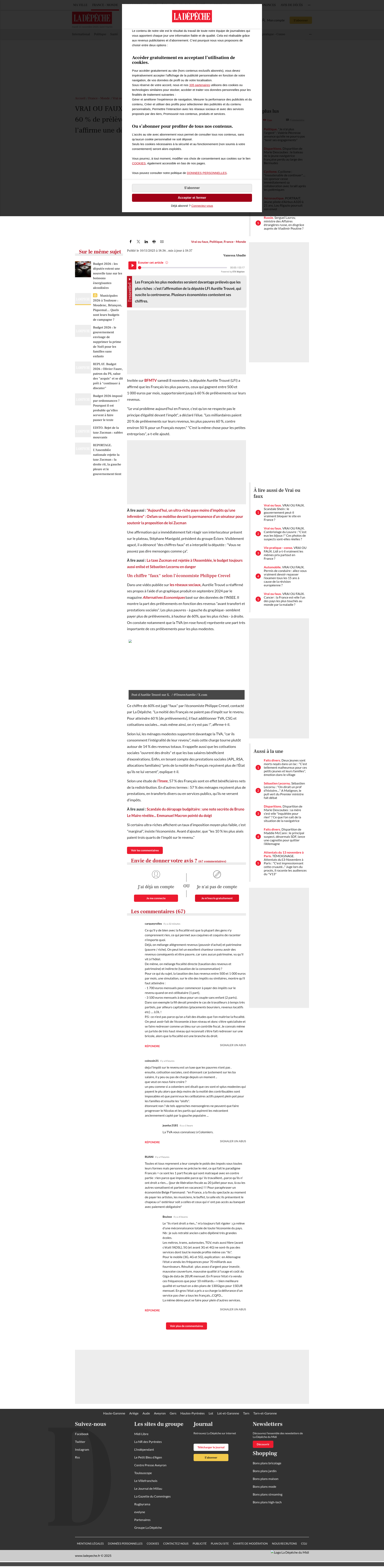 VRAI OU FAUX. Les plus pauvres payent-ils vraiment 60 % de prélèvements sur leurs revenus comme l’affirme une députée LFI ?Les Français les plus modestes seraient davantage prélevés que les plus riches : c’est l’affirmation de la députée LFI Aurélie Trouvé, qui suscite la controverse. Plusieurs économistes contestent ses chiffres.PNGPDF