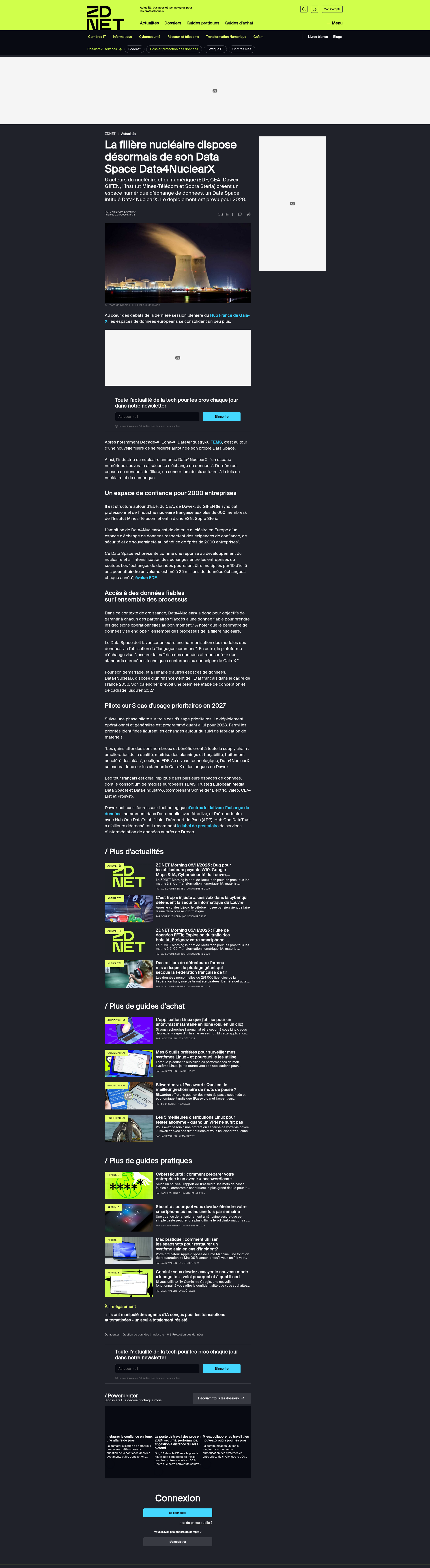 La filière nucléaire dispose désormais de son Data Space Data4NuclearX - ZDNET6 acteurs du nucléaire et du numérique créent un espace numérique d’échange de données, le Data Space Data4NuclearX.PNGPDF