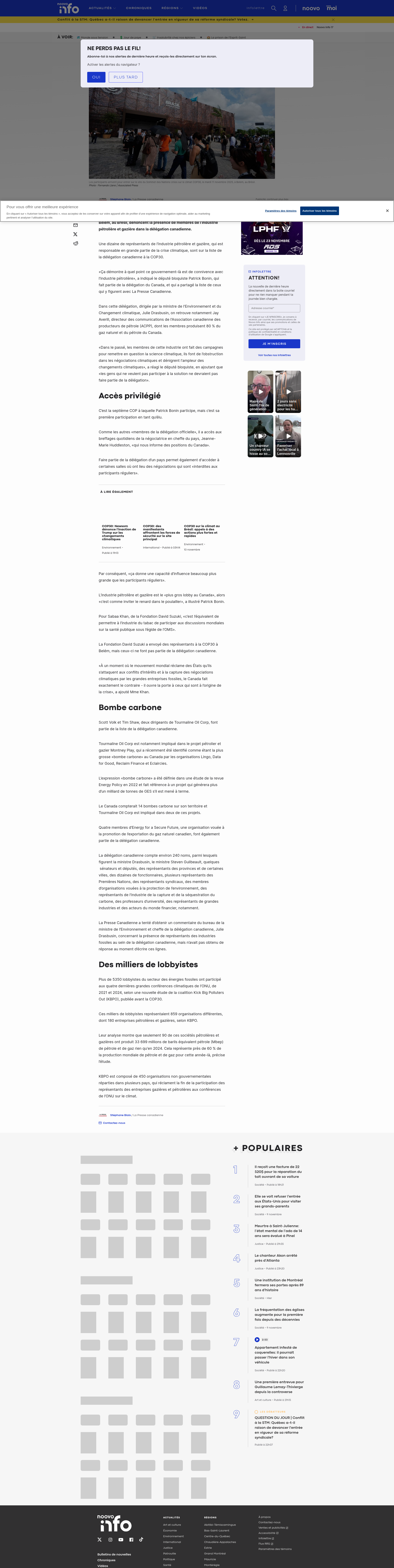 COP30: des promoteurs de gaz font partie de la délégation du CanadaDes participants à la COP30 sur le climat, qui s'est amorcé lundi à Belém, au Brésil, dénoncent la présence de membres de l’industrie pétrolière et gazière dans la délégation canadienne.PNGPDF