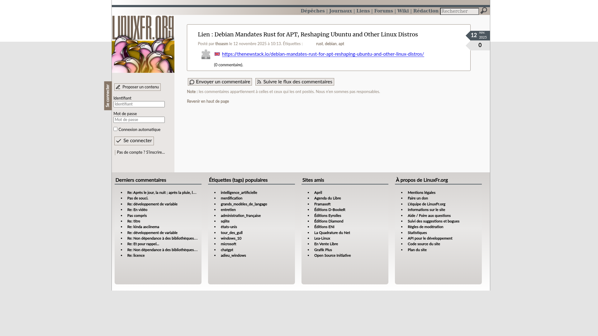 Debian Mandates Rust for APT, Reshaping Ubuntu and Other Linux Distros - LinuxFr.orgDebian Mandates Rust for APT, Reshaping Ubuntu and Other Linux Distros PNGPDF