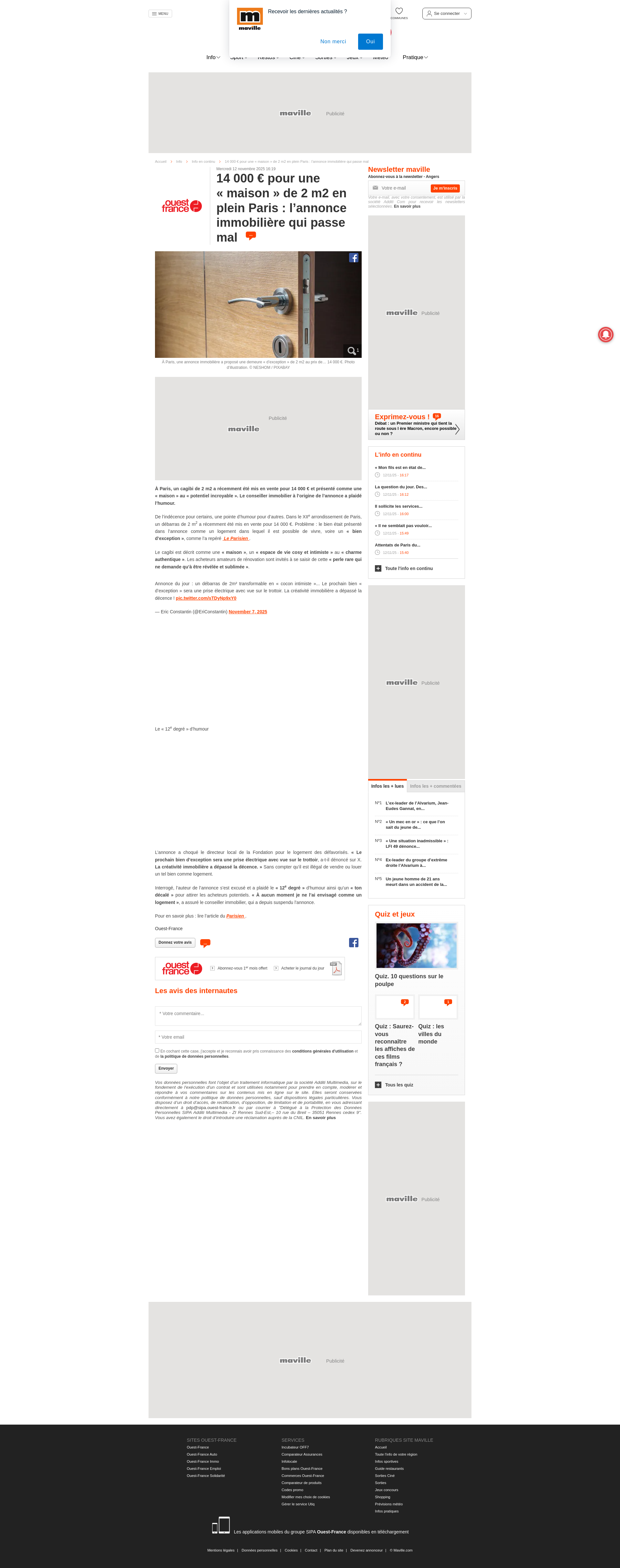 14 000 € pour une « maison » de 2 m2 en plein Paris : l’annonce immobilière qui passeInfo Angers 14 000 pour une « maison » de 2 m2 en plein Paris lannonce immobilière qui passe... AngersPNGPDF