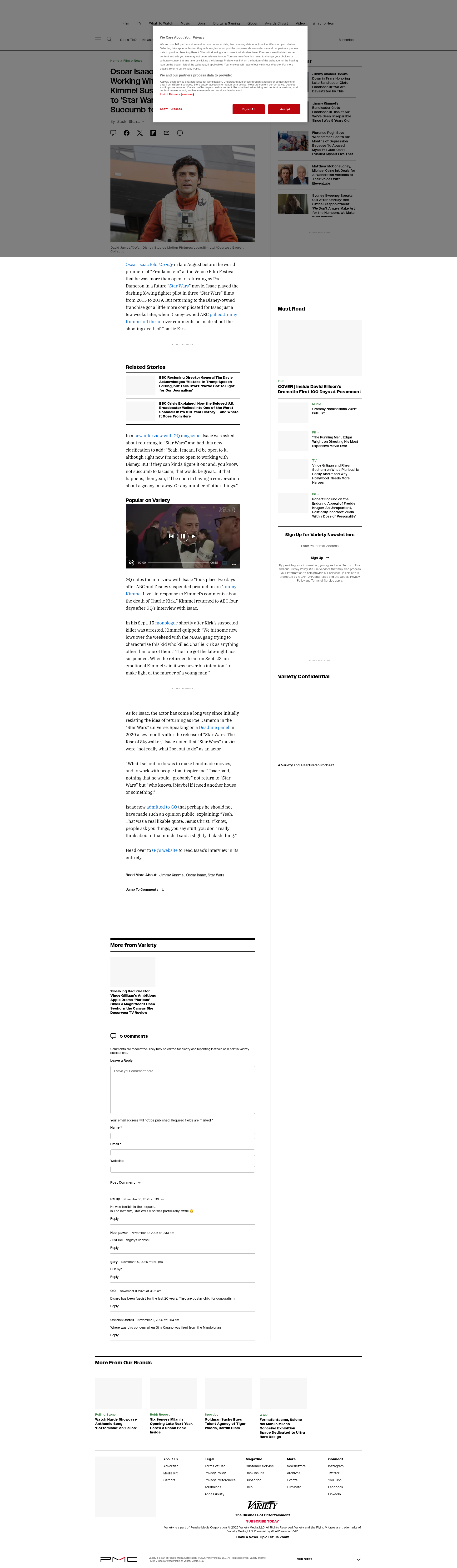 Oscar Isaac Was ‘Not So Open to Working With Disney’ After Jimmy Kimmel Suspension, Said He’d Return to ‘Star Wars’ if Disney Does ‘Not Succumb to Fascism’Oscar Isaac was not open to working with Disney after Jimmy Kimmel's suspension and will only return to 'Star Wars' if the studio avoids fascism.PNGPDF