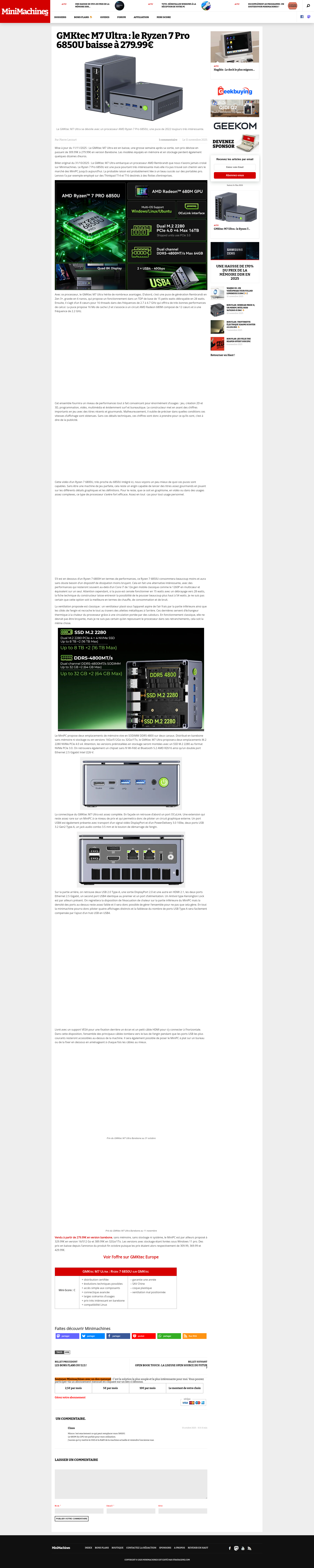 GMKtec M7 Ultra : le Ryzen 7 Pro 6850U baisse à 279.99€Le GMKtec M7 Ultra se dévoile avec un processeur AMD Ryzen 7 Pro 6850U, une puce de 2022 toujours très intéressante.PNGPDF