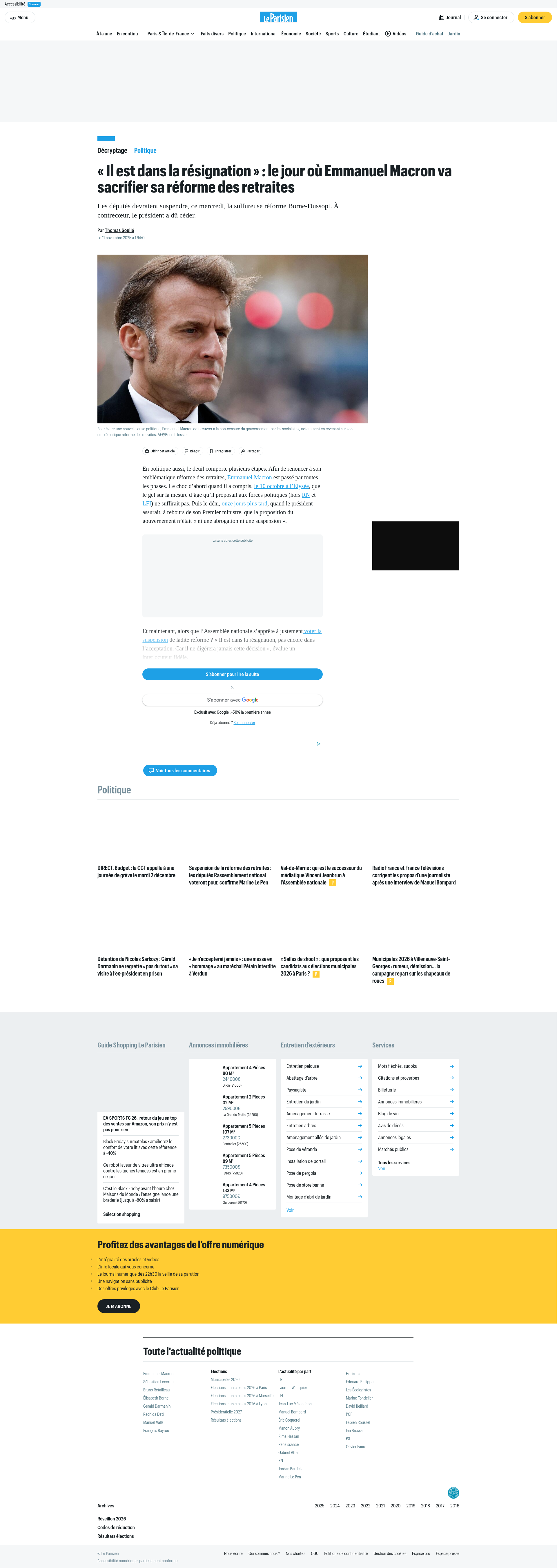« Il est dans la résignation » : le jour où Emmanuel Macron va sacrifier sa réforme des retraitesLes députés devraient suspendre, ce mercredi, la sulfureuse réforme Borne-Dussopt. À contrecœur, le président a dû céder.PNGPDF