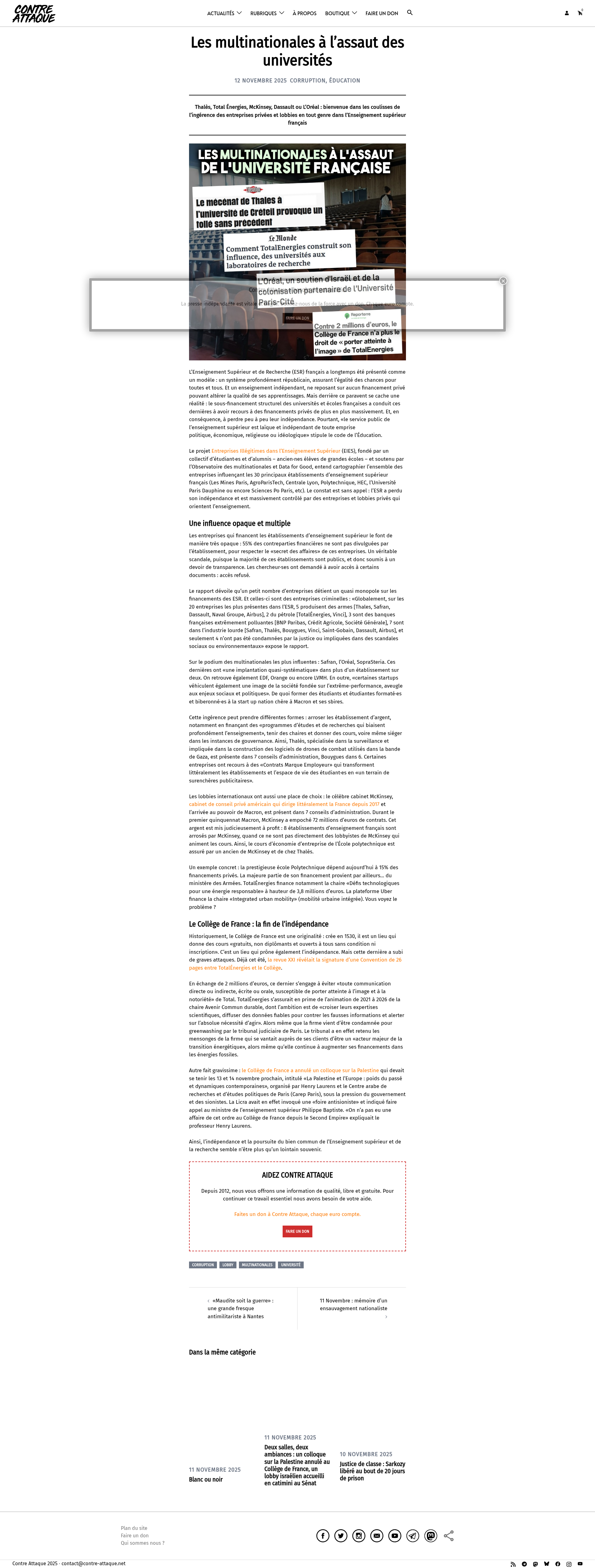 Les multinationales à l'assaut des universitésBienvenue dans les coulisses de l’ingérence des entreprises privées et lobbies en tout genre dans l’Enseignement supérieur françaisPNGPDF