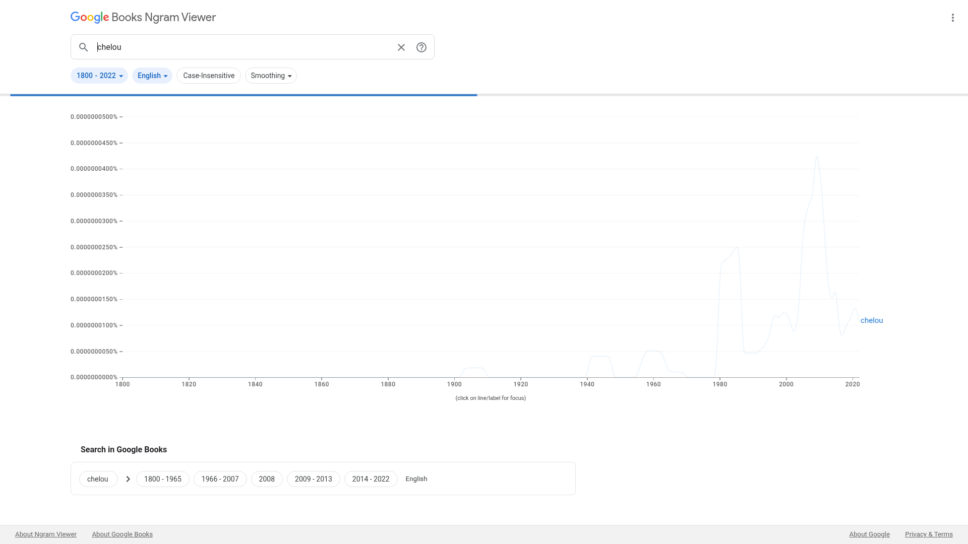Google Books Ngram ViewerGoogle Ngrams: chelou, 1800-2022PNGPDF