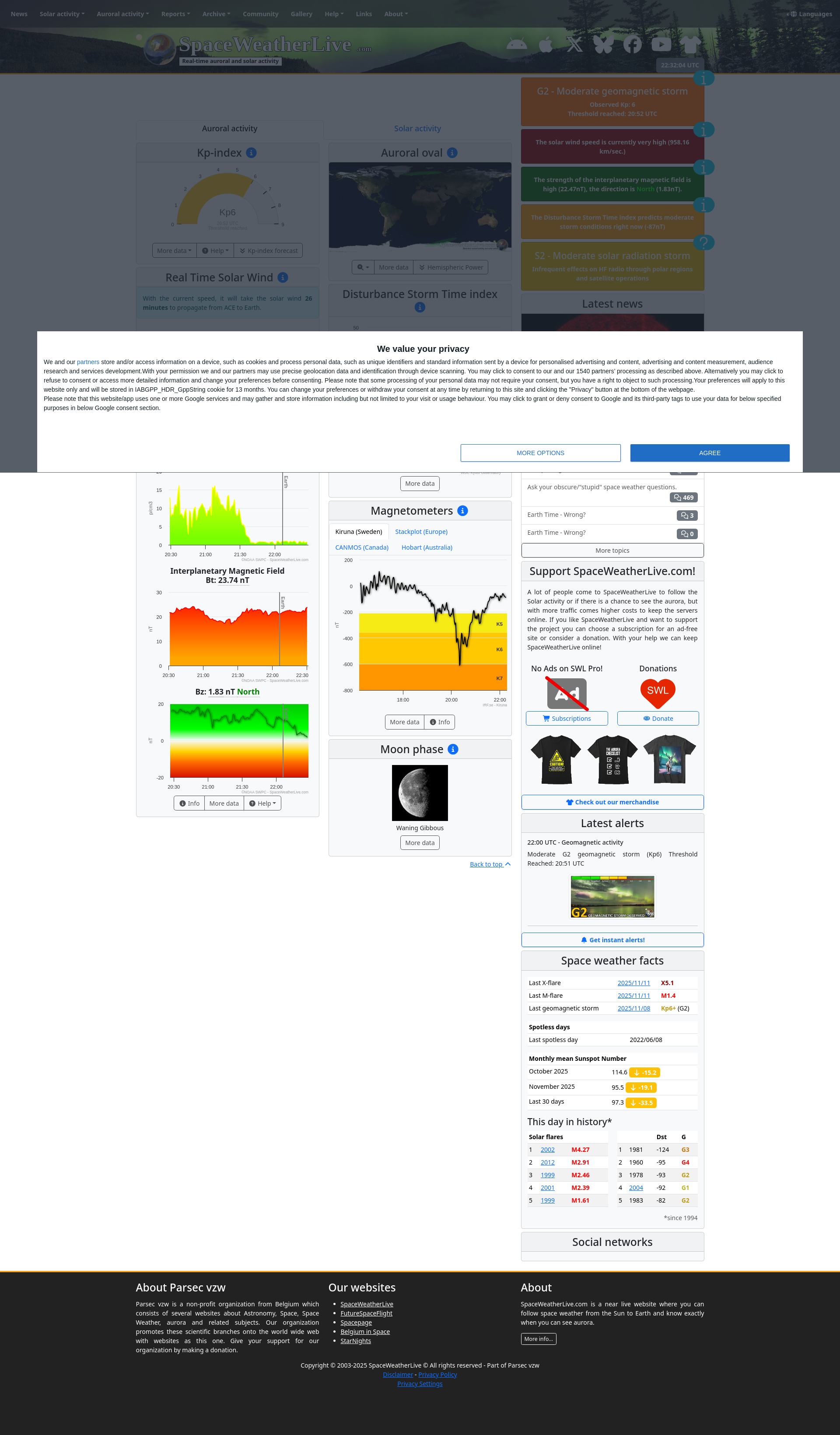 SpaceWeatherLive.com | Real-time data and plots auroral activityReal-Time solar activity and auroral activity data websitePNGPDF