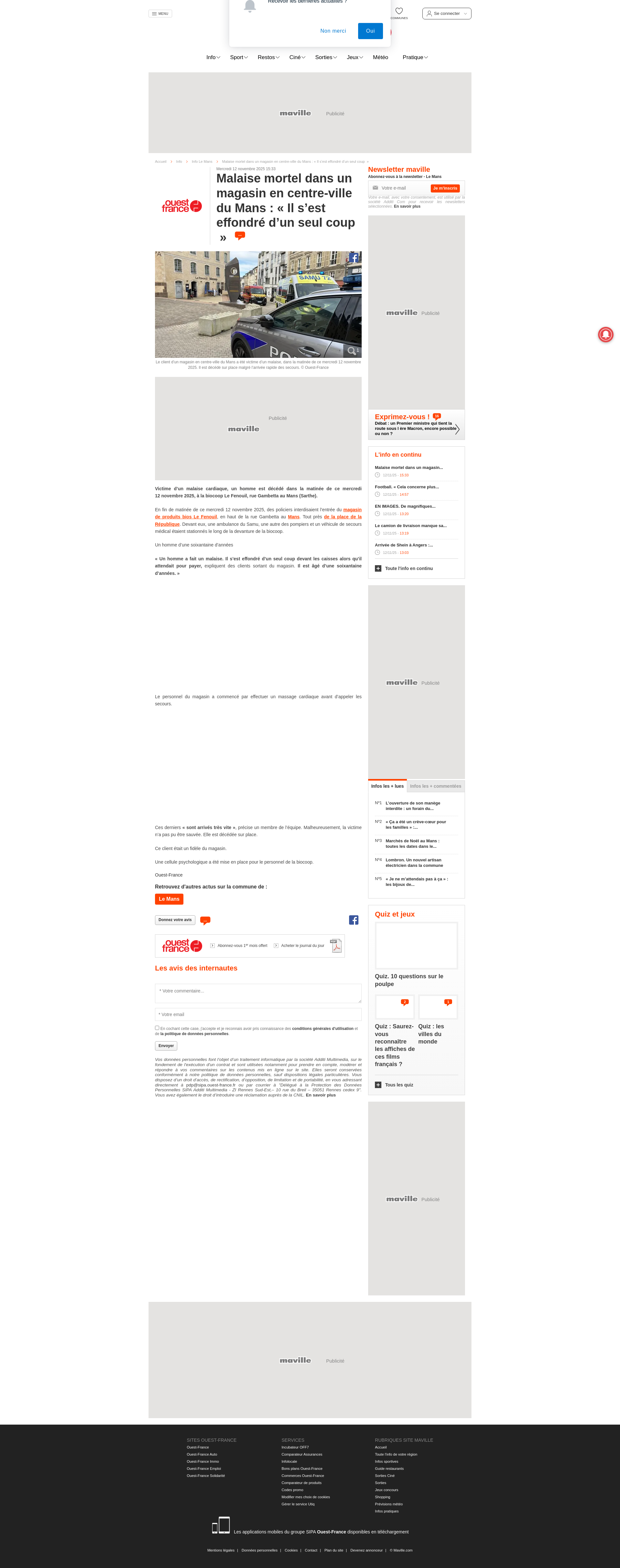 Malaise mortel dans un magasin en centre-ville du Mans : « Il s’est effondré d’un seul coupInfo Le Mans Malaise mortel dans un magasin en centre-ville du Mans « Il sest effondré dun... Le MansPNGPDF
