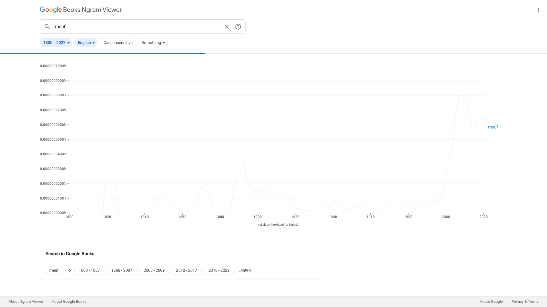Google Books Ngram ViewerGoogle Ngrams: meuf, 1800-2022PNGPDF