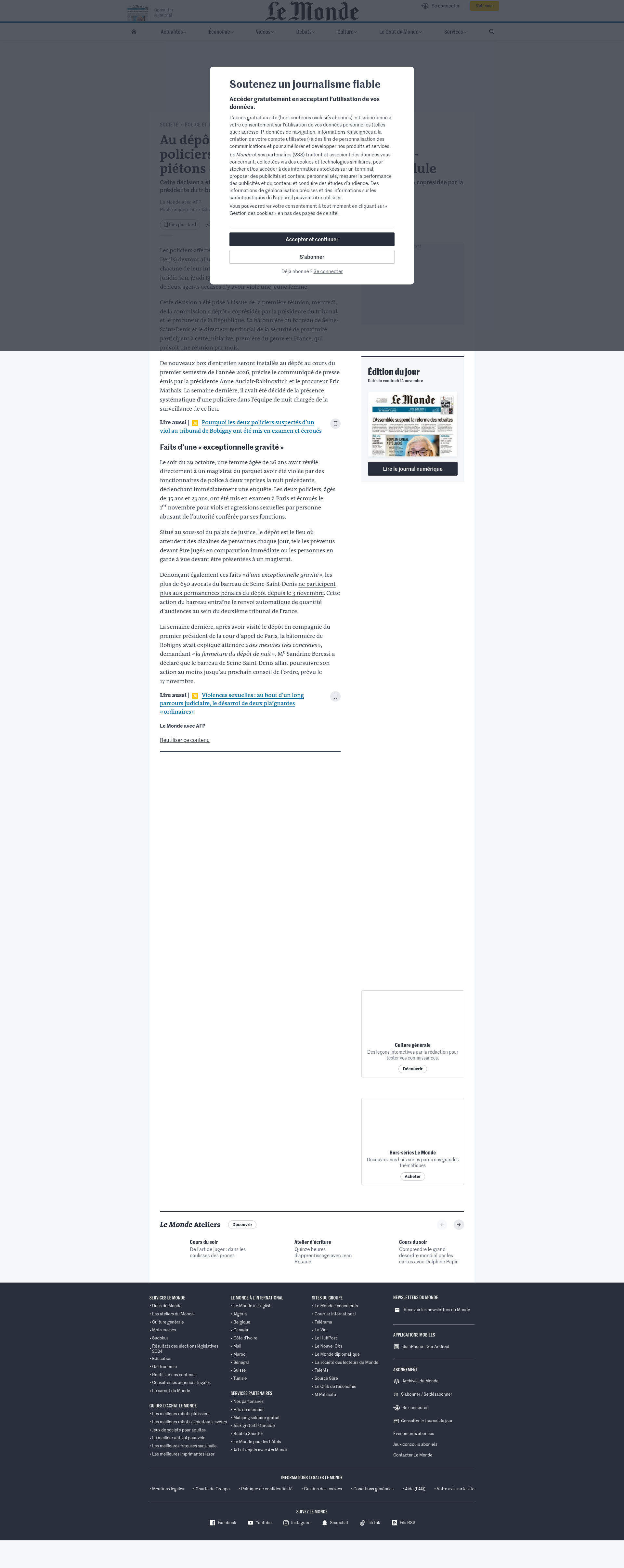 Au dépôt du tribunal de Bobigny, où deux policiers sont accusés de viol, les caméras-piétons des agents seront allumées en celluleCette décision a été prise à l’issue de la première réunion, mercredi, de la commission « dépôt » coprésidée par la présidente du tribunal et le procureur de la République.PNGPDF