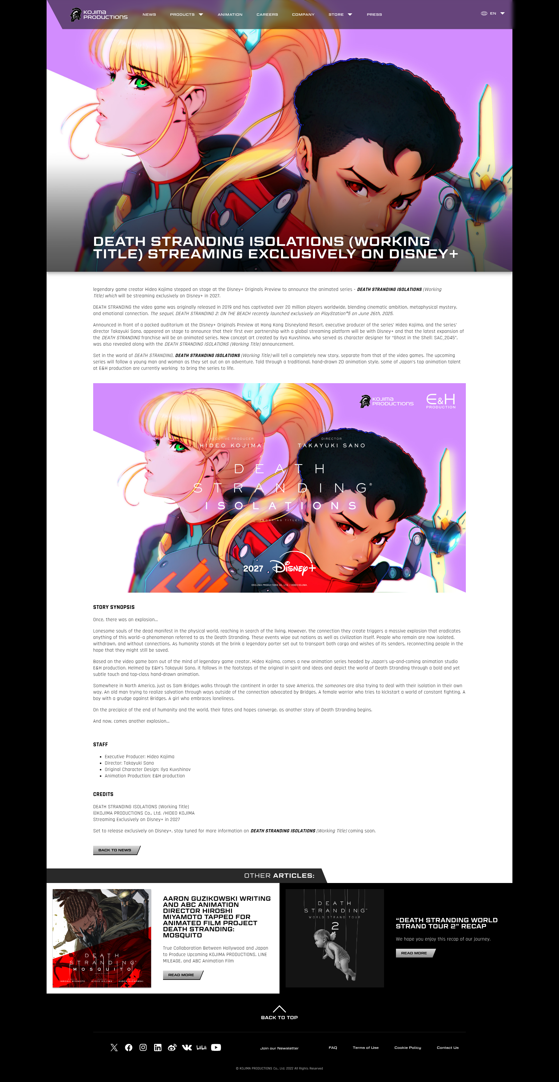 DEATH STRANDING ISOLATIONS (WORKING TITLE) STREAMING EXCLUSIVELY ON DISNEY+ | Kojima ProductionsKojima ProductionsPNGPDF