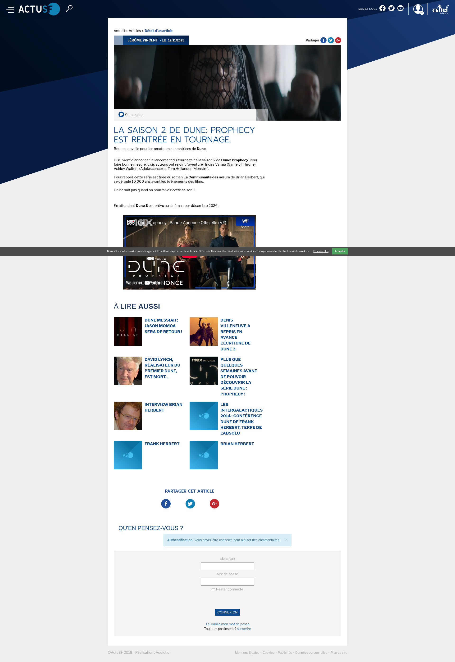 La saison 2 de Dune: Prophecy est rentrée en tournage.Bonne nouvelle pour les amateurs et amatrices de Dune. HBO vient d'annoncer le lancement du tournage de la saison 2 de Dune: Prophecy. Pour faire bonne mesure, troisPNGPDF