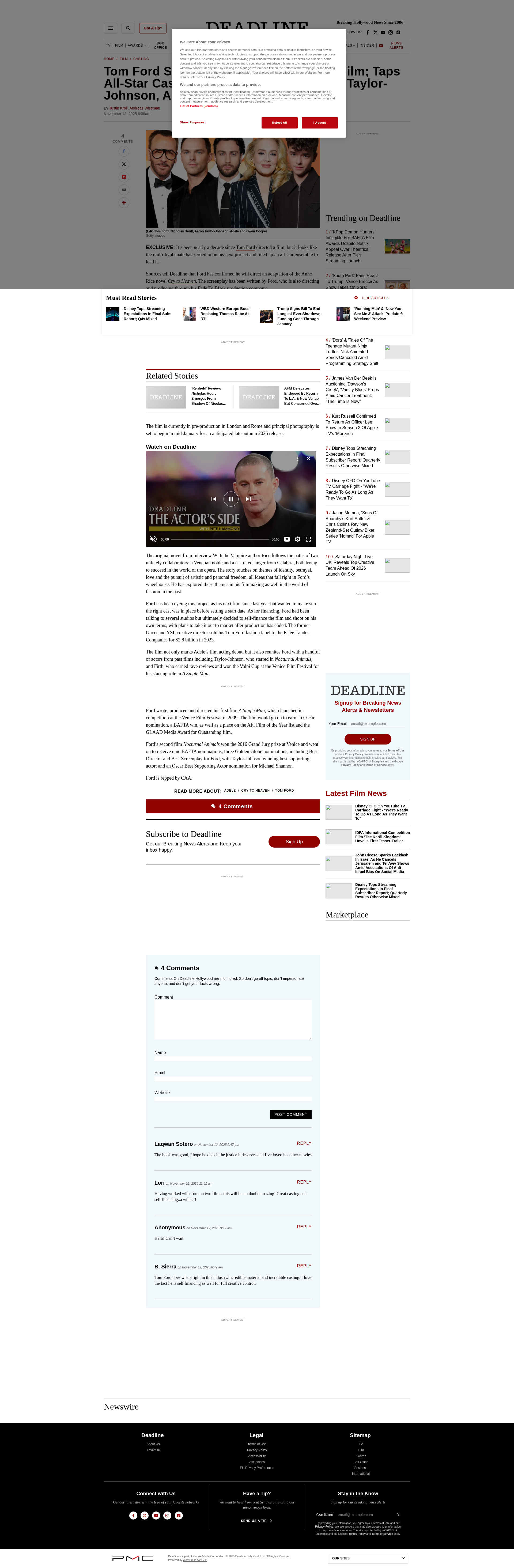 Tom Ford Sets ‘Cry To Heaven’ As Next Film; Taps All-Star Cast With Nicholas Hoult, Aaron Taylor-Johnson, Adele, Owen Cooper & MoreAdele, Nicholas Hoult, Aaron Taylor-Johnson and Colin Firth among those joining Tom Ford's next film 'Cry To Heaven'.PNGPDF