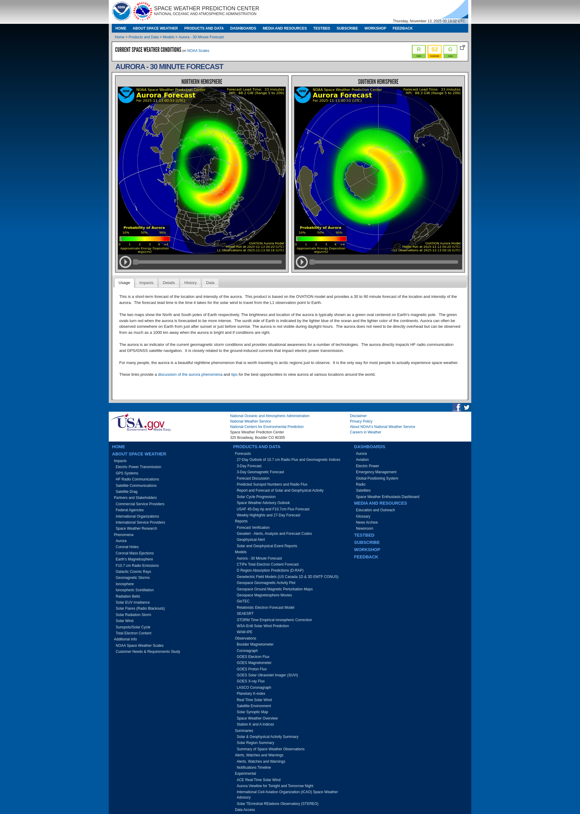 Aurora - 30 Minute Forecast | NOAA / NWS Space Weather Prediction CenterPNGPDF