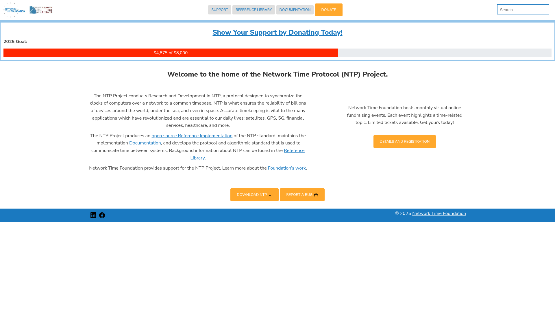 Welcome to the home of the Network Time Protocol (NTP) Project.The NTP Project conducts Research and Development in NTP, a protocol designed to synchronize the clocks of computers over a network to a common timebase.PNGPDF
