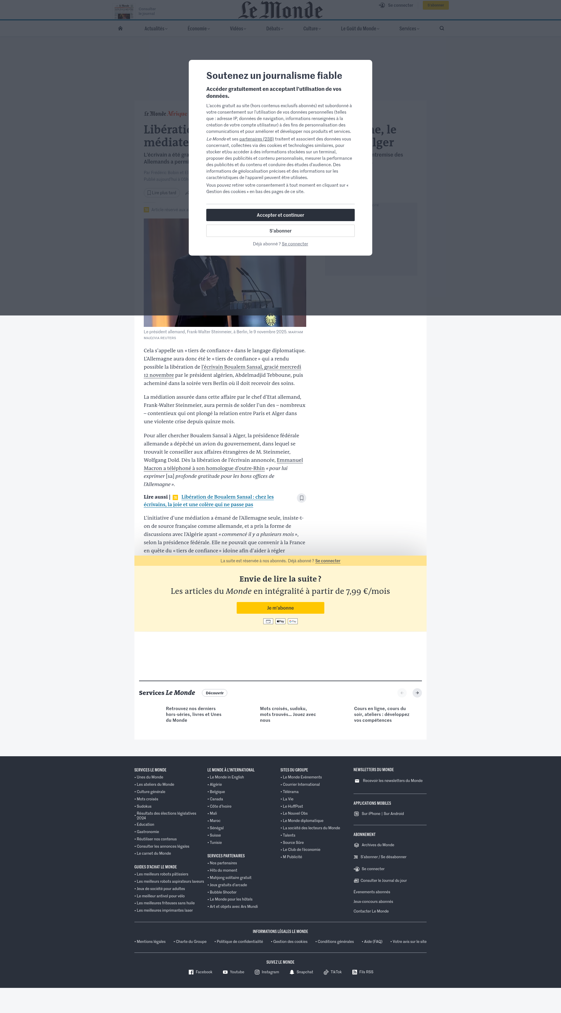 Libération de Boualem Sansal : l’Allemagne, le médiateur qui sauve la face de Paris et d’AlgerL’écrivain a été gracié par Abdelmadjid Tebboune, mercredi, avant de s’envoler pour Berlin. L’entremise des Allemands a permis au président algérien de ne pas apparaître comme cédant face à la France.PNGPDF