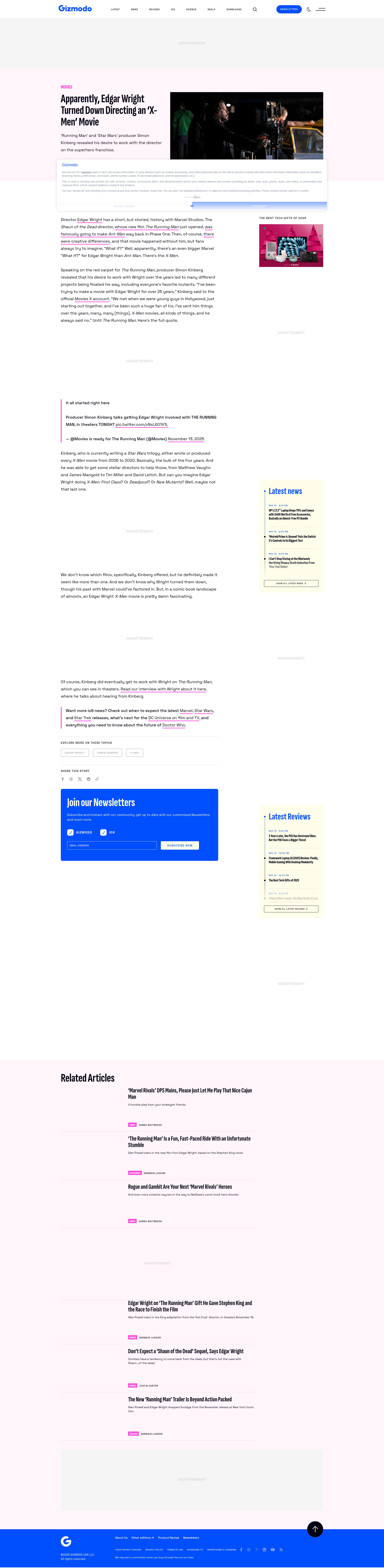 Apparently, Edgar Wright Turned Down Directing an 'X-Men' Movie'Running Man' and 'Star Wars' producer Simon Kinberg revealed his desire to work with the director on the superhero franchise.PNGPDF