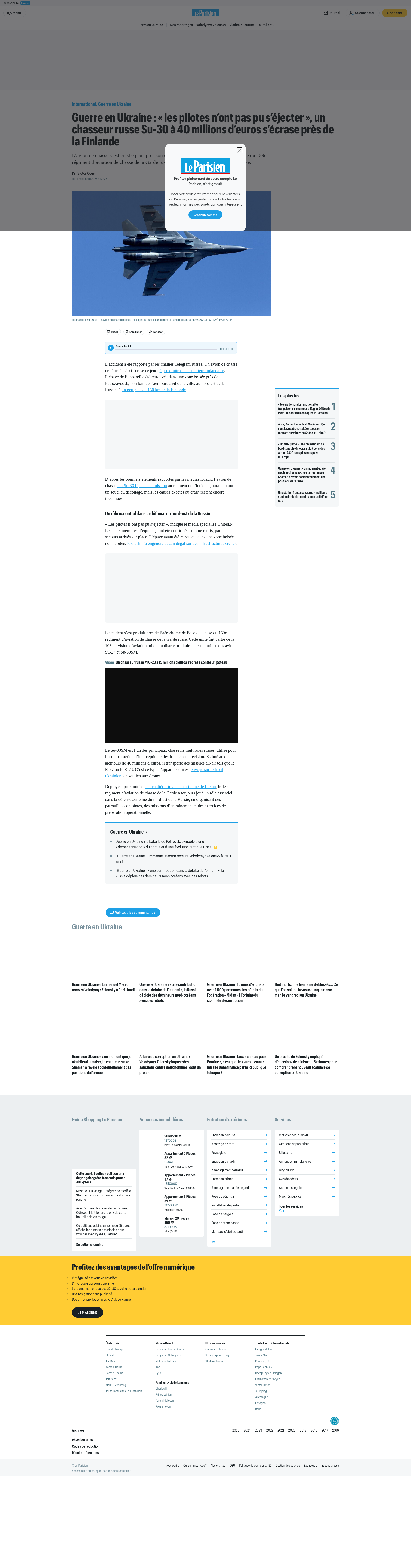 Guerre en Ukraine : « les pilotes n’ont pas pu s’éjecter », un chasseur russe Su-30 à 40 millions d’euros s’écrase près de la FinlandeL’avion de chasse s’est crashé peu après son décollage ce jeudi, à proximité de la base du 159e régiment d’aviation de chasse de la Garde ruPNGPDF