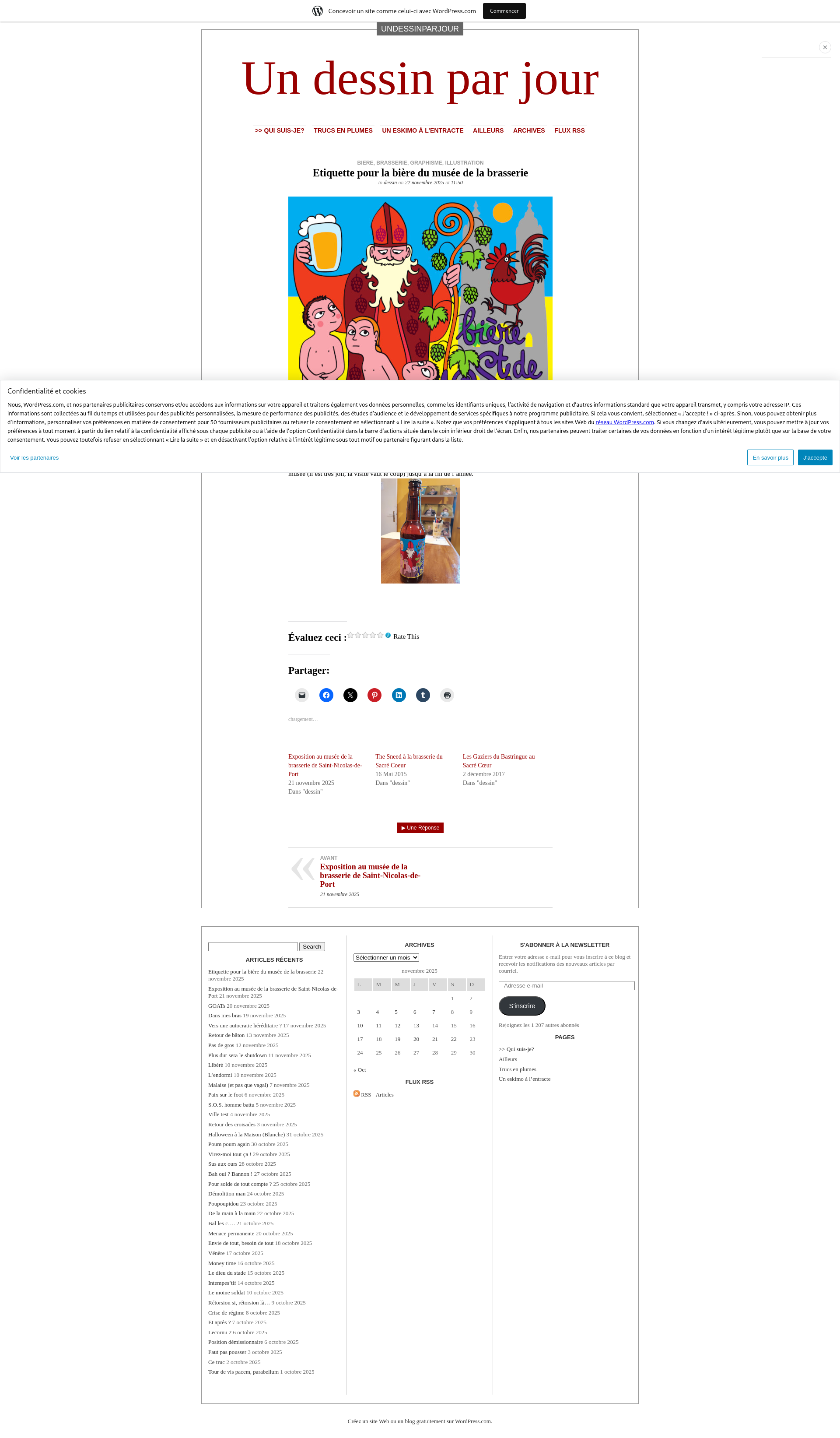 Etiquette pour la bière du musée de la brasserieComme promis hier, voici l'étiquette que j'ai faite pour la bière du musée de la brasserie de Saint-Nicolas-de-Port et qui a été dévoilée hier. L'expo qui l'accompagne (aquarelles de Buveurs de bière) sera visible aux heures d'ouverture du musée (il est très joli, la visite vaut le coup) jusqu'à la fin de l'année.PNGPDF