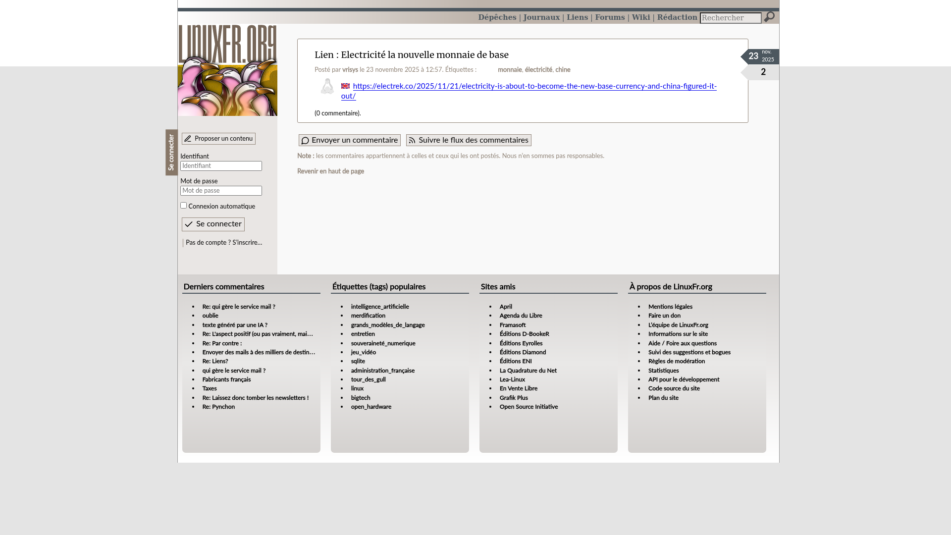 Electricité la nouvelle monnaie de base - LinuxFr.orgElectricité la nouvelle monnaie de basePNGPDF