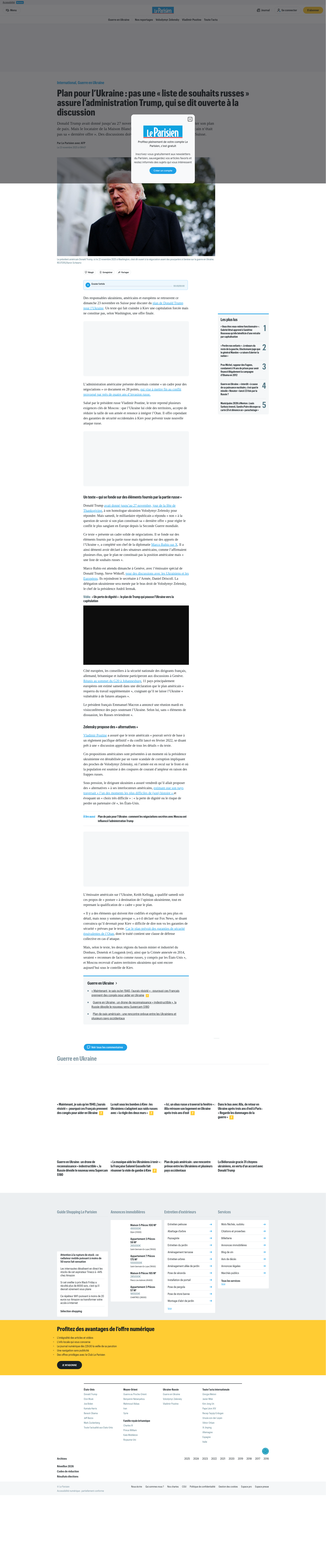 Plan pour l’Ukraine : pas une « liste de souhaits russes » assure l’administration Trump, qui se dit ouverte à la discussionDonald Trump avait donné jusqu’au 27 novembre à Volodymyr Zelensky pour accepter son plan de paix. Mais le locataire de la Maison Blanche a PNGPDF