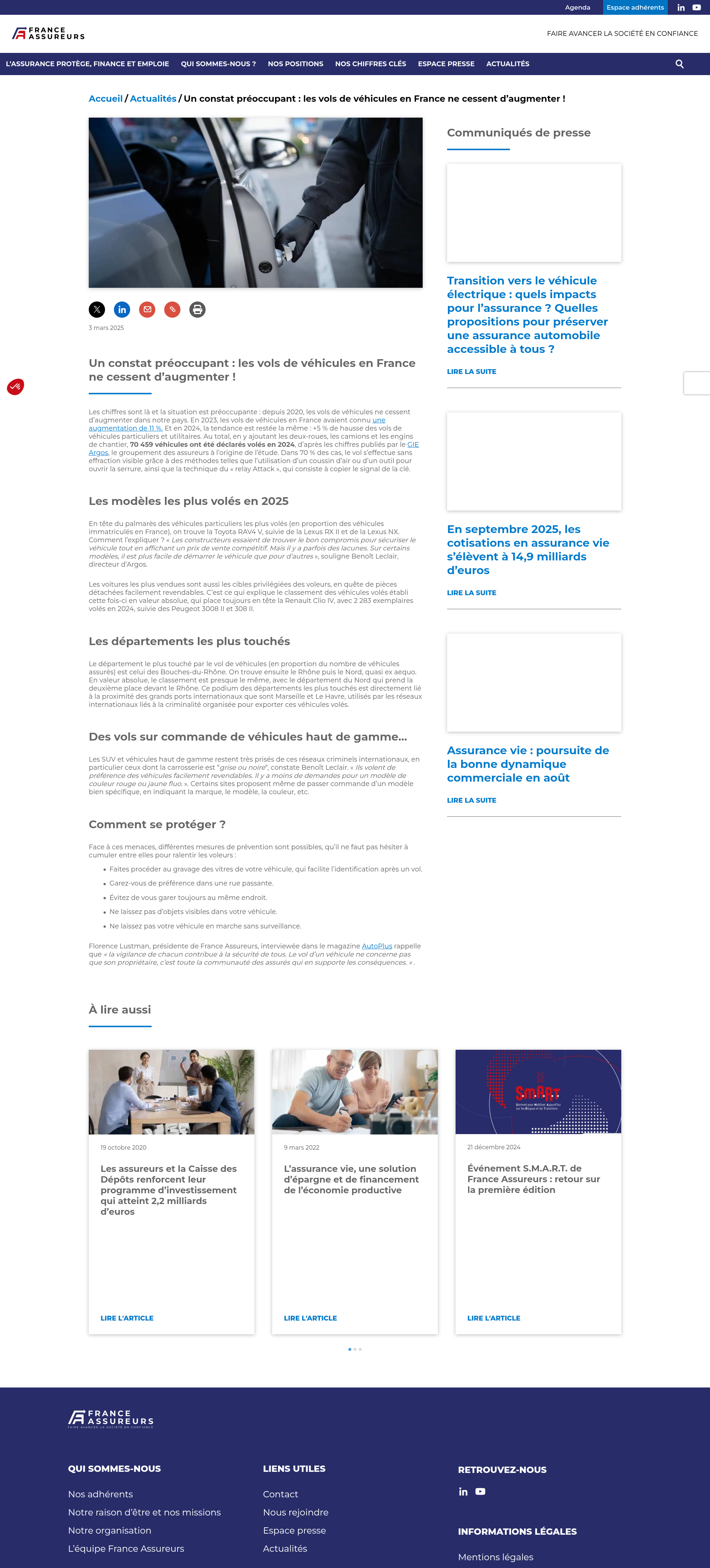 Un constat préoccupant : les vols de véhicules en France ne cessent d’augmenter ! - France AssureursLes chiffres sont là et la situation est préoccupante : depuis 2020, les vols de véhicules ne cessent d’augmenter dans notre pays. En 2023, les volsPNGPDF