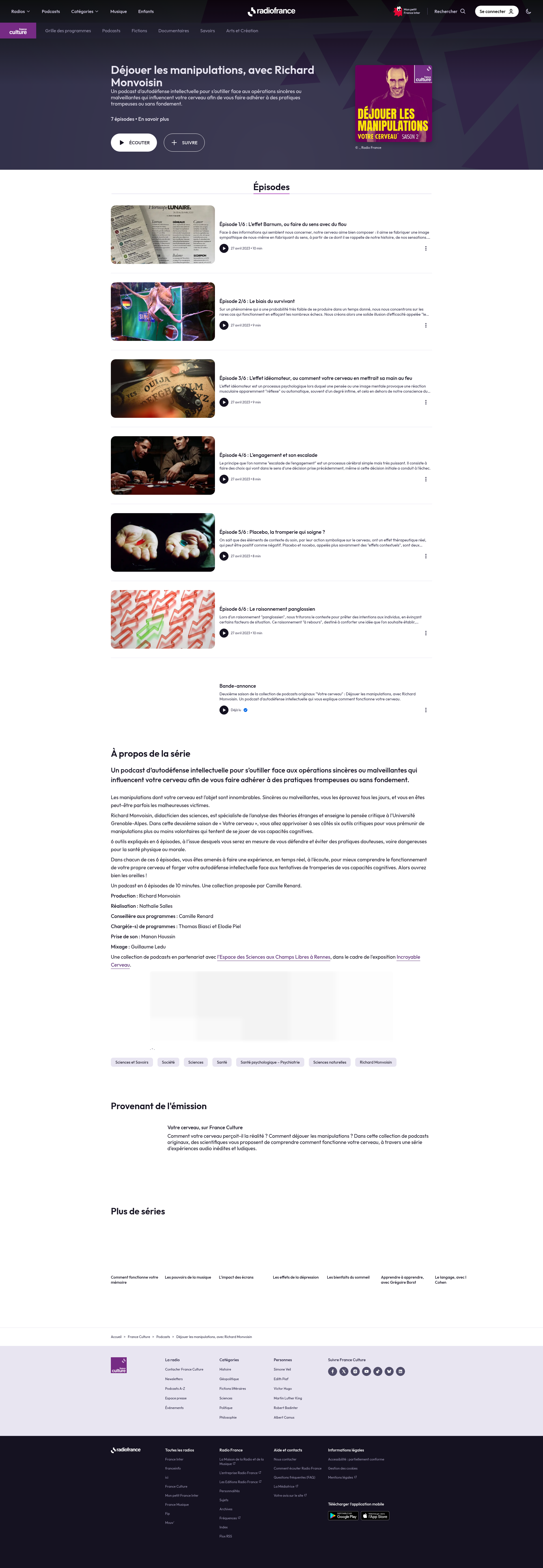 Déjouer les manipulations, avec Richard Monvoisin : un podcast à écouter en ligne | France CultureUn podcast d’autodéfense intellectuelle pour s’outiller face aux opérations sincères ou malveillantes qui influencent votre cerveau afin de vous faire adhérer à des pratiques trompeuses ou sans fondement.PNGPDF