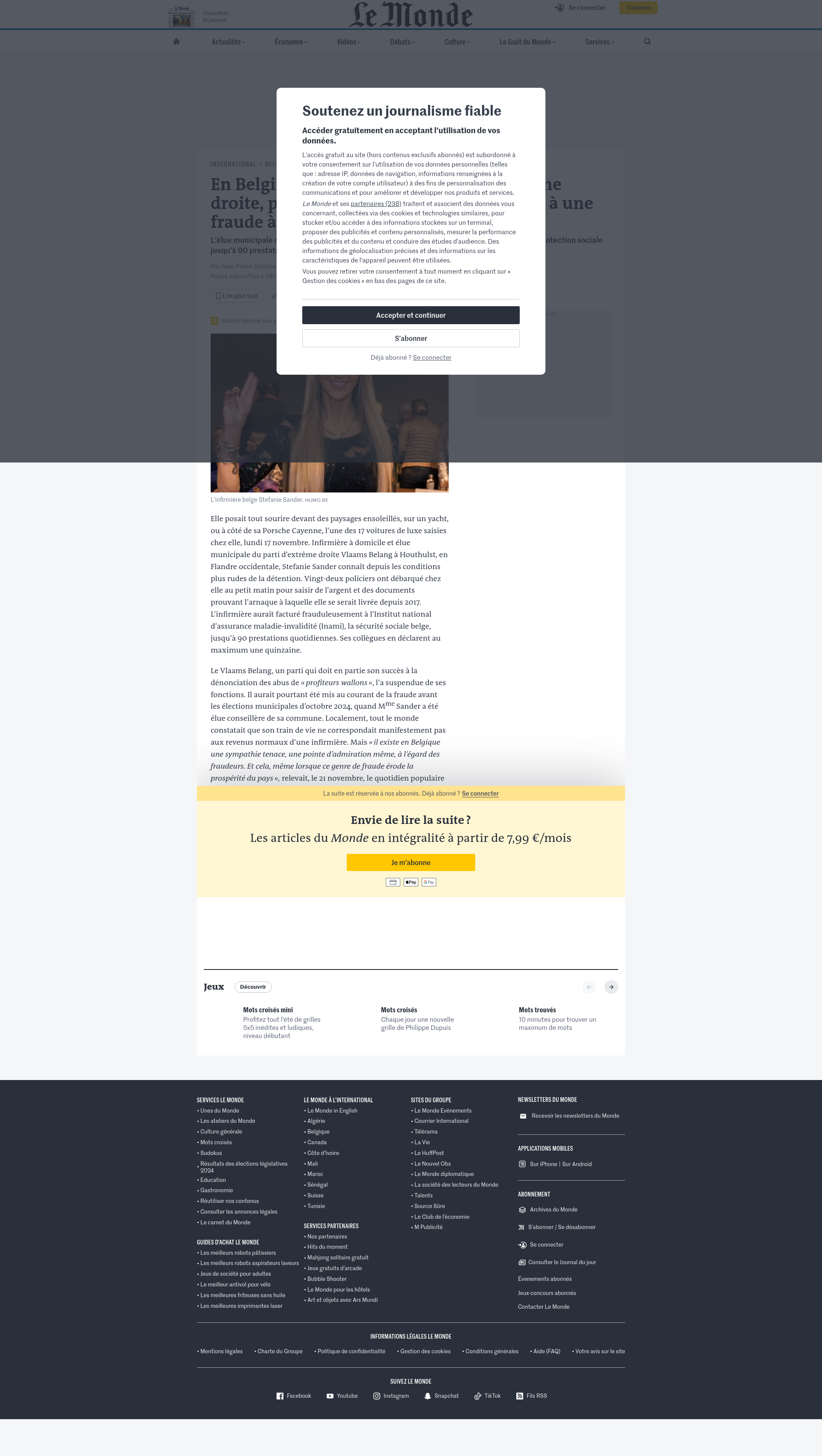 En Belgique, une infirmière, élue d’extrême droite, possédait 17 voitures de luxe grâce à une fraude à la sécurité socialeL’élue municipale du Vlaams Belang à Houthulst, Stefanie Sander, facturait à l’organisme de protection sociale jusqu’à 90 prestations quotidiennes.PNGPDF