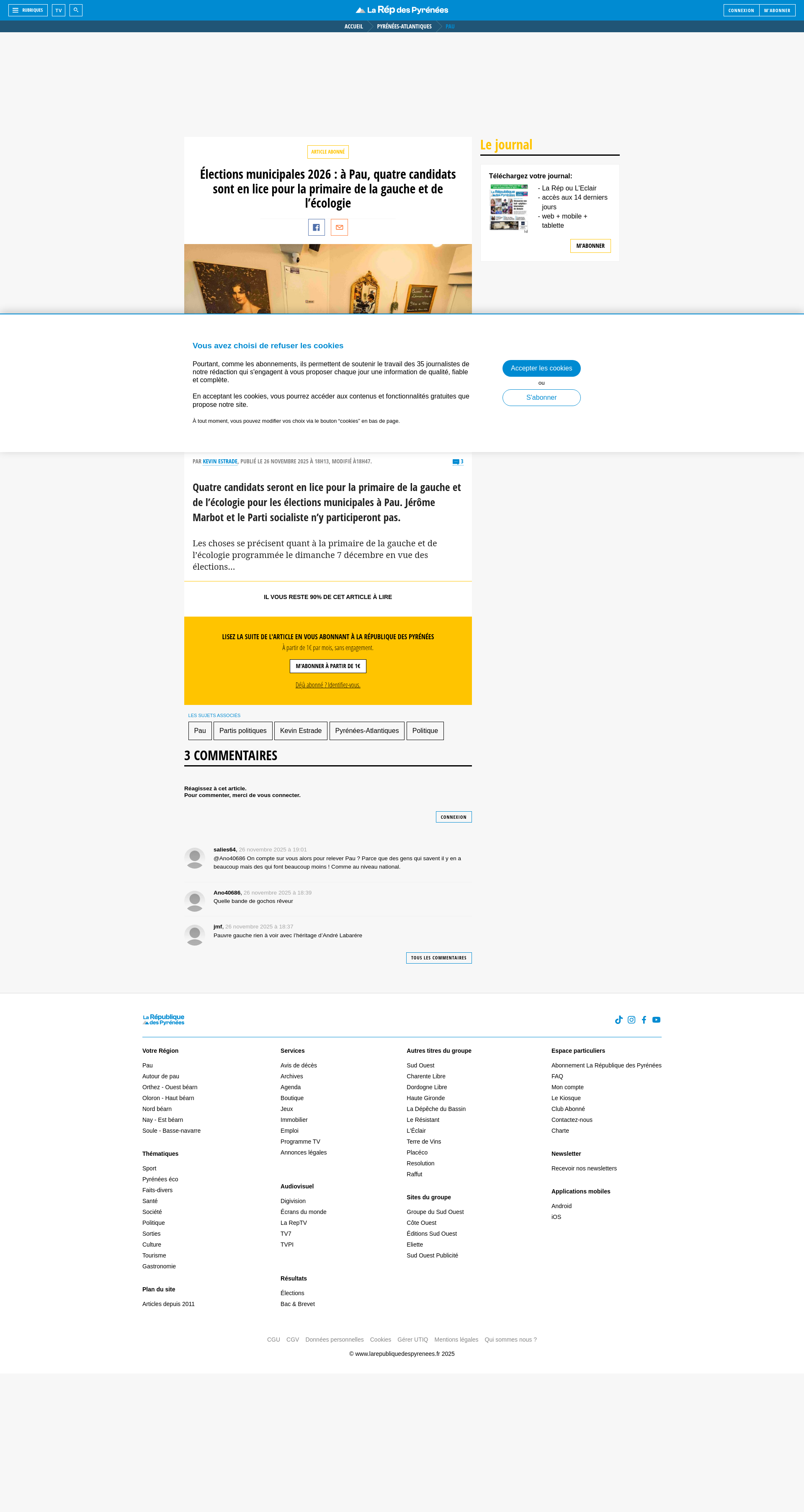 Élections municipales 2026 : à Pau, quatre candidats sont en lice pour la primaire de la gauche et de l’écologieQuatre candidats seront en lice pour la primaire de la gauche et de l’écologie pour les élections municipales à Pau. Jérôme Marbot et le Parti socialiste n’y participeront pas.PNGPDF