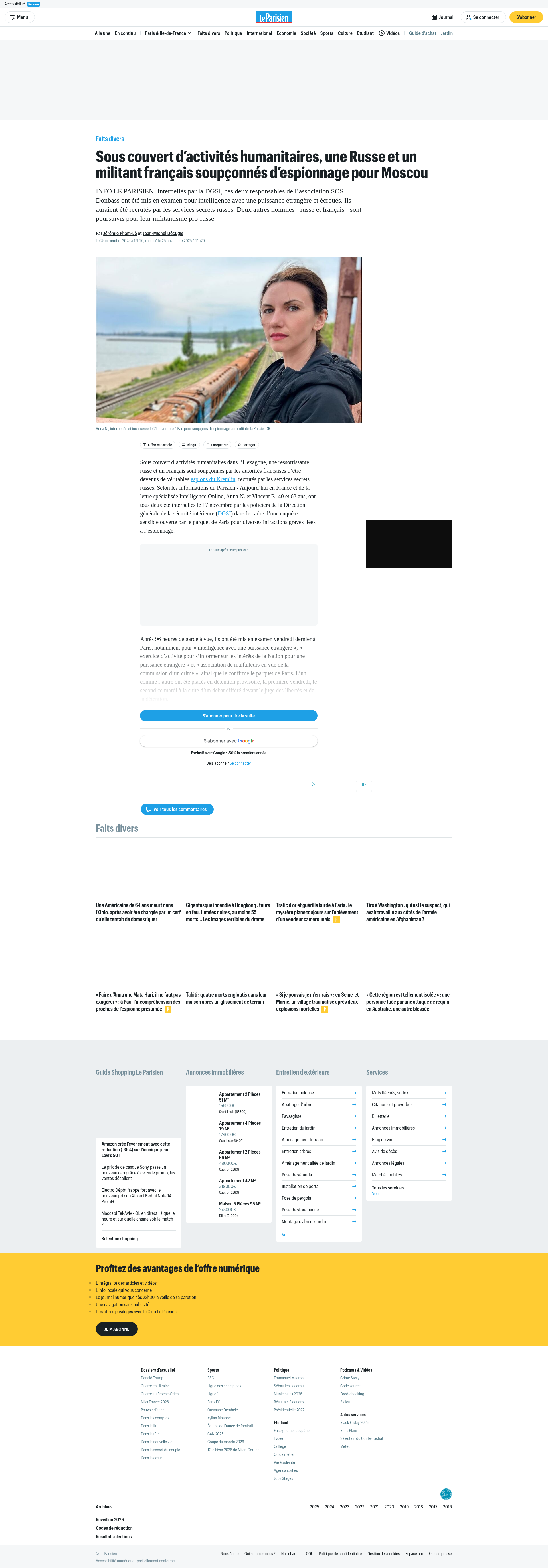 Sous couvert d’activités humanitaires, une Russe et un militant français soupçonnés d’espionnage pour MoscouINFO LE PARISIEN. Interpellés par la DGSI, ces deux responsables de l’association SOS Donbass ont été mis en examen pour intelligence avec uPNGPDF