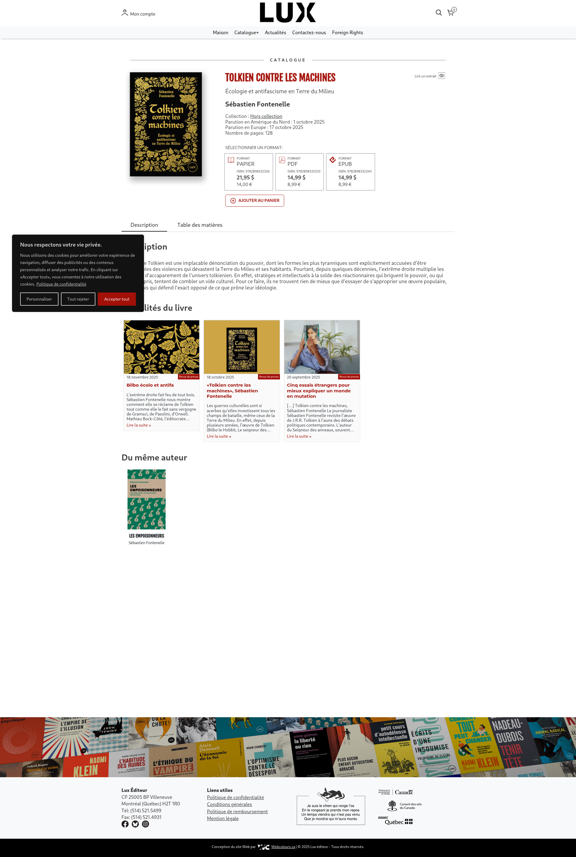 Tolkien contre les machines - Lux Éditeur | maison d'édition indépendante | publication d'ouvrages à caractère critique en sciences humainesL’œuvre de Tolkien est une implacable dénonciation du pouvoir, dont les formes les plus tyranniques sont explicitement accusées d’être responsables desPNGPDF