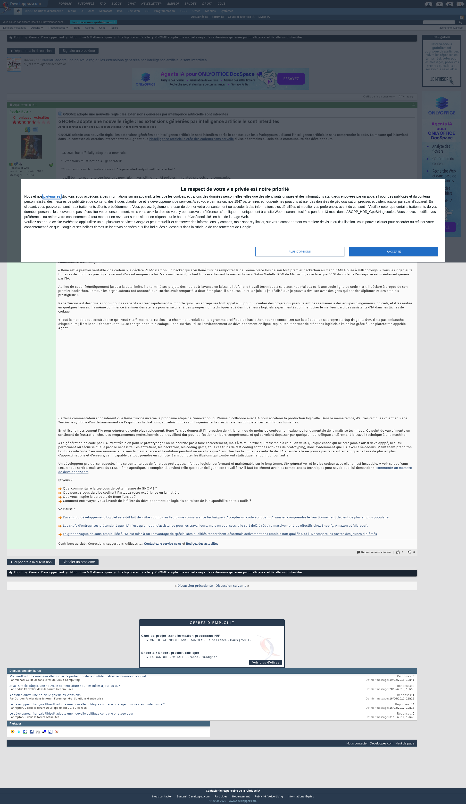 GNOME adopte une nouvelle règle : les extensions générées par intelligence artificielle sont interdites - Intelligence artificielleGNOME adopte une nouvelle règle : les extensions générées par intelligence artificielle sont interdites Après le constat que certains développeurs utilisent l’IA sans comprendre le code GNOME adopte unePNGPDF