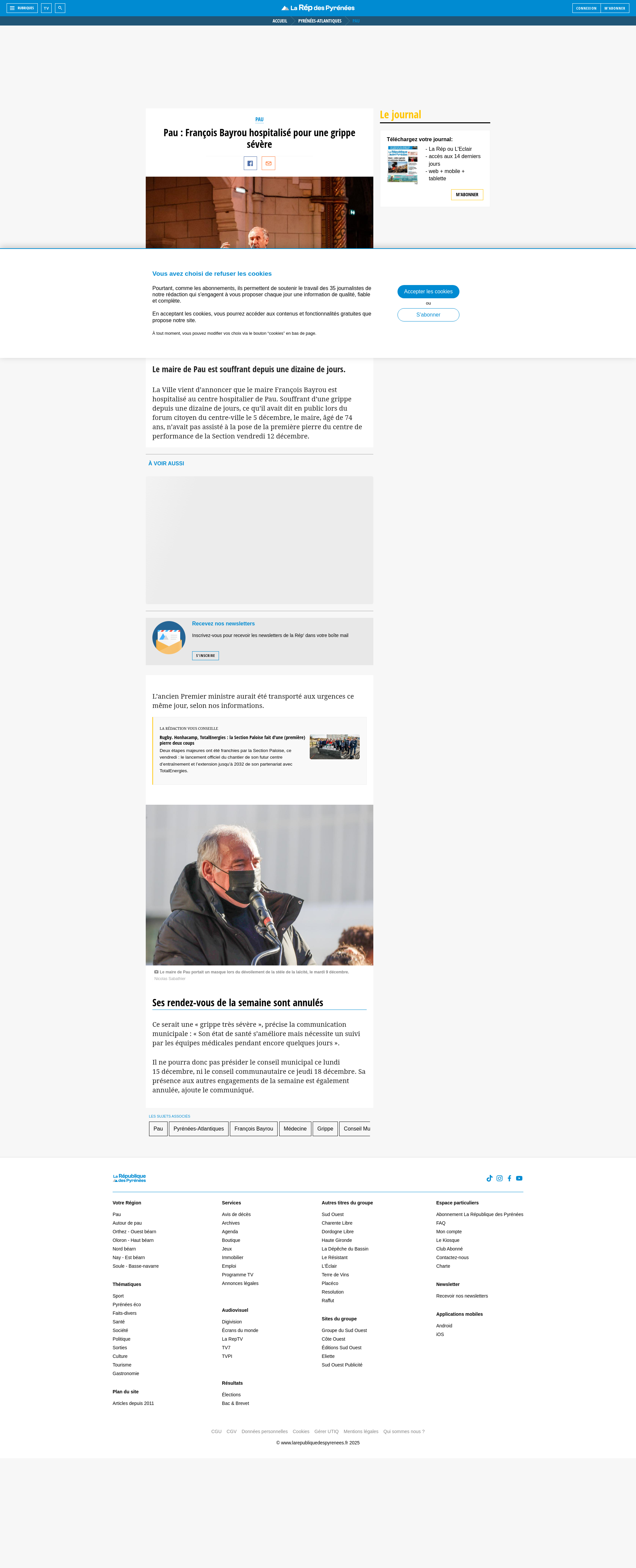 Pau : François Bayrou hospitalisé pour une grippe sévèreLe maire de Pau est souffrant depuis une dizaine de jours.PNGPDF
