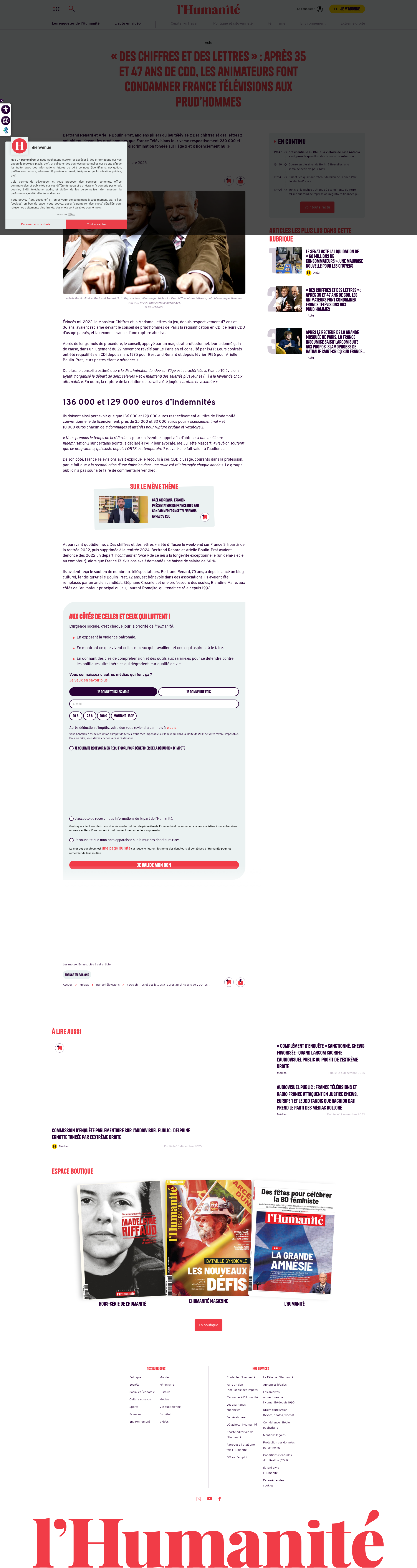 « Des chiffres et des lettres » : après 35 et 47 ans de CDD, les animateurs font condamner France Télévisions aux prud’hommes - L'Humanité Bertrand Renard et Arielle Boulin-Prat, anciens piliers du jeu télévisé « Des chiffres et des lettres », ont obtenu devant les prud’hommes que France Télévisions leur verse respe...PNGPDF
