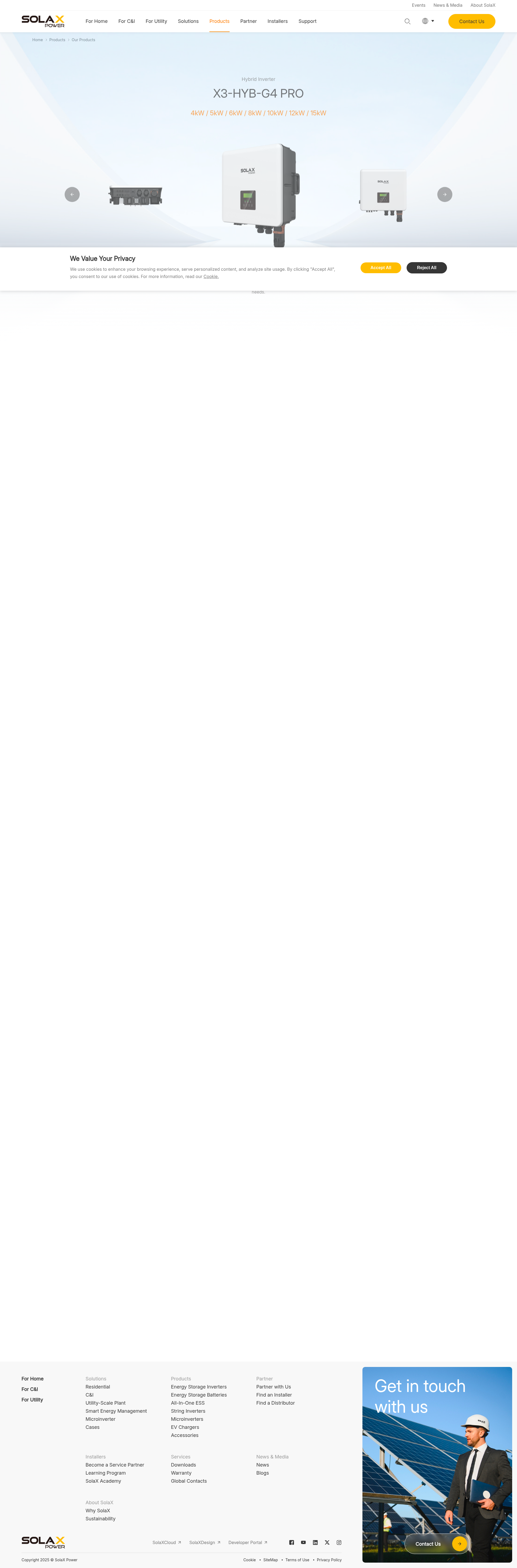 SolaX X3-HYB-G4 PRO | 4-15kW Inverter With Ultra-Wide MPPT Range of 110-950VThe SolaX X3-HYB-G4 PRO three phase battery inverter from SolaX Power is available in multiple models with power ratings of 4kW, 5kW, 6kW, 8kW, 10kW, 12kW, and 15kW. Contact us today!PNGPDF