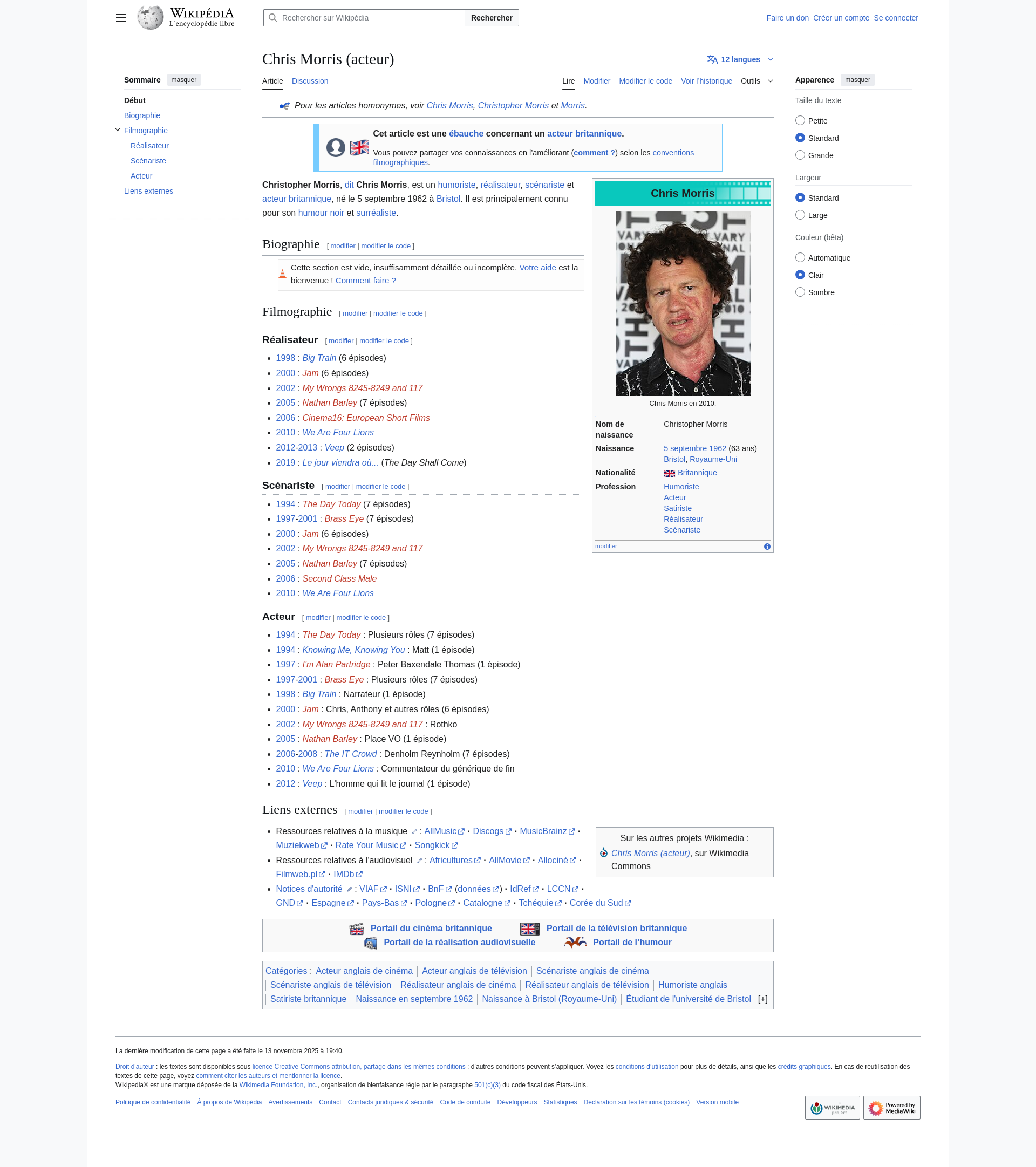 Chris Morris (acteur) — WikipédiaPNGPDF