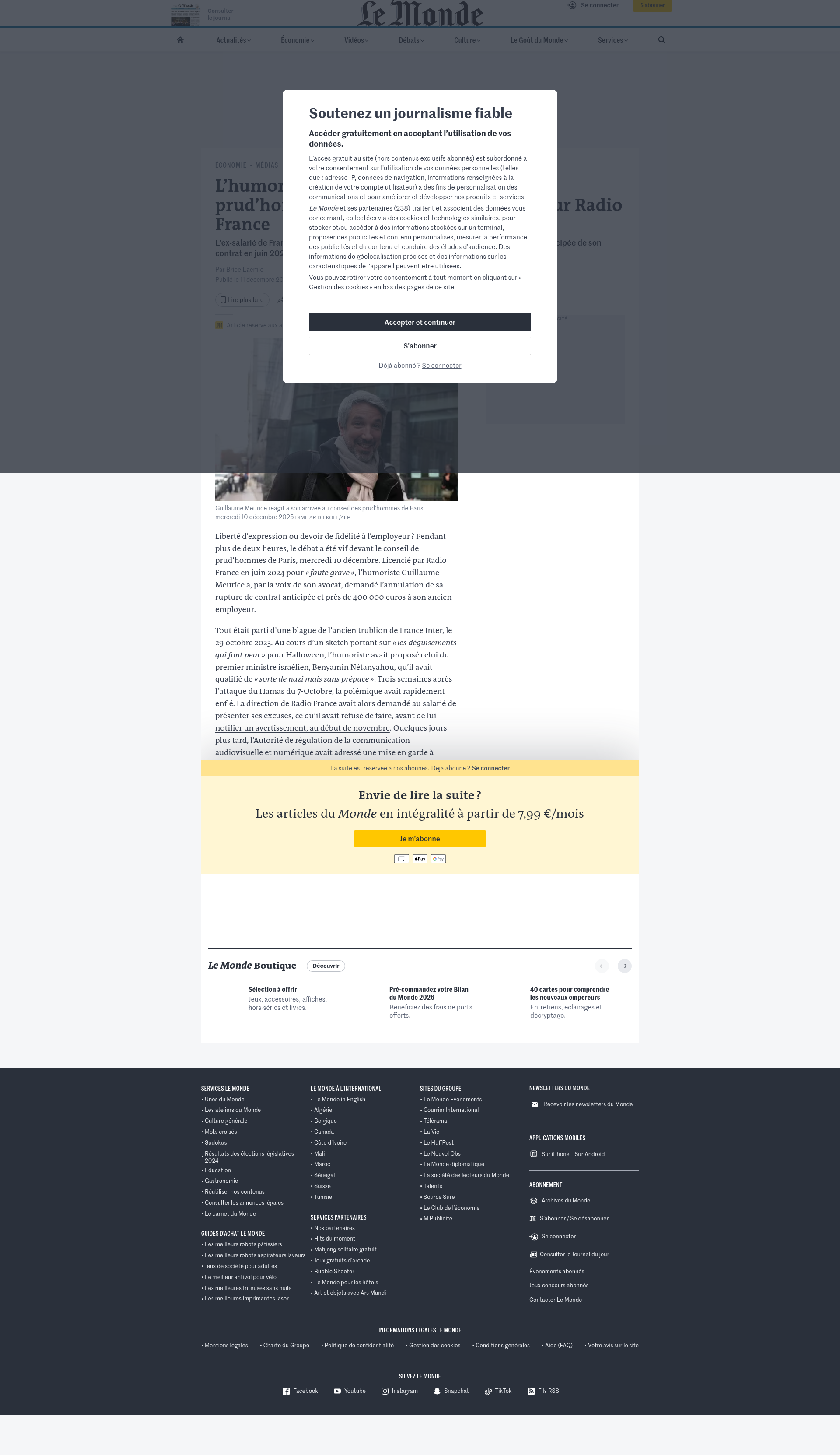 L’humoriste Guillaume Meurice aux prud’hommes face à son ancien employeur Radio FranceL’ex-salarié de France Inter, qui travaille désormais pour Radio Nova, a contesté la rupture anticipée de son contrat en juin 2024, mercredi 10 décembre, devant le conseil de prud’hommes de Paris.PNGPDF