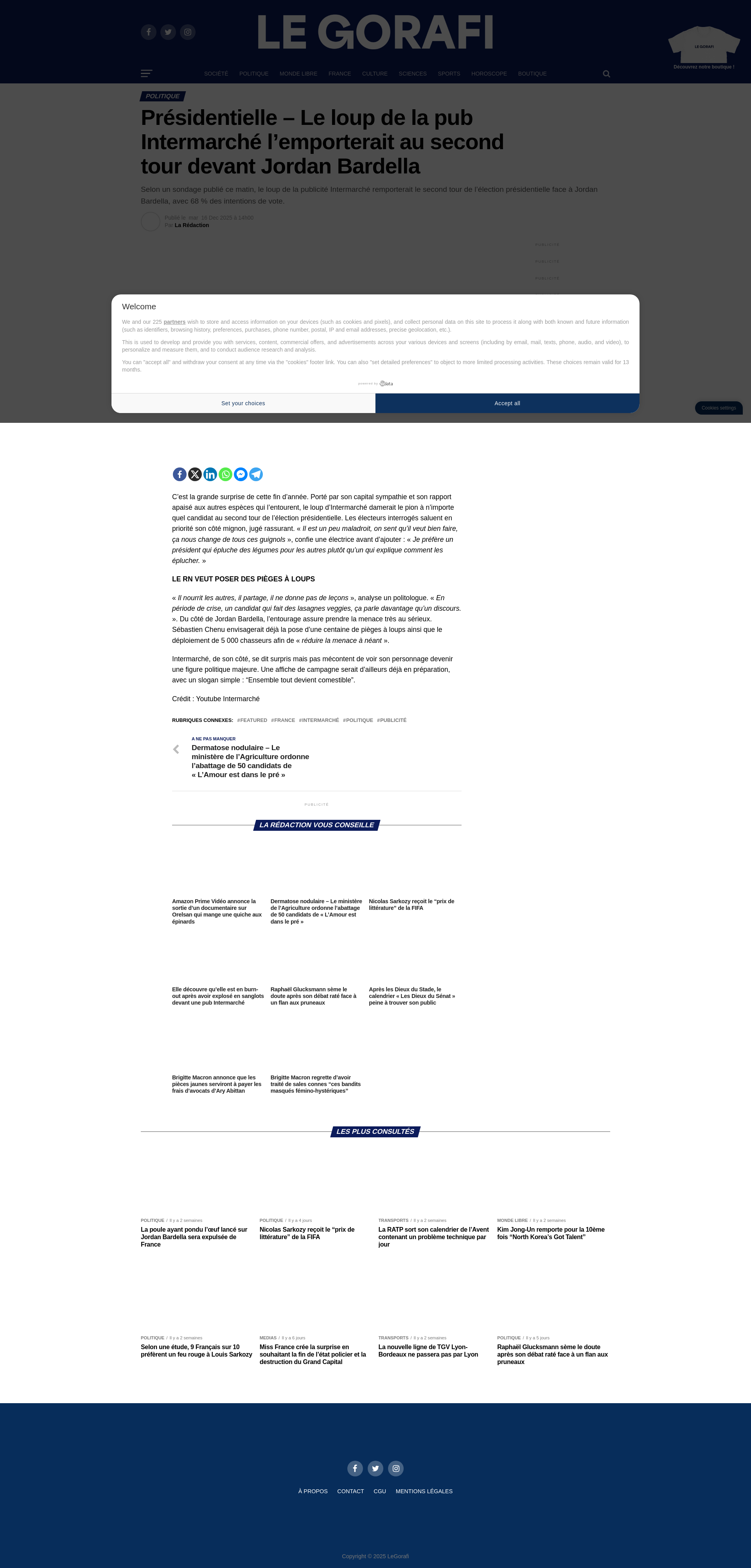 Présidentielle - Le loup de la pub Intermarché l’emporterait au second tour devant Jordan BardellaToute l'information selon des sources contradictoires.PNGPDF