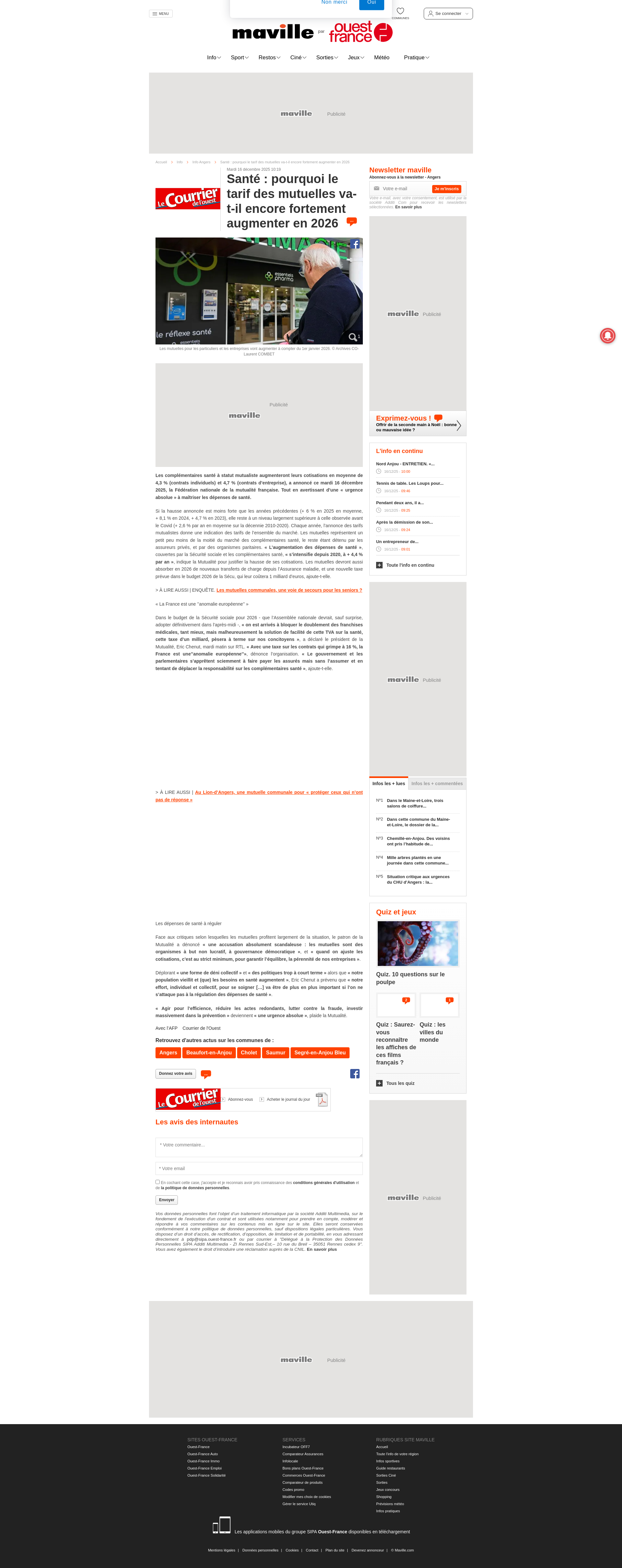 Santé : pourquoi le tarif des mutuelles va-t-il encore fortement augmenter en 2026 Info Angers Santé pourquoi le tarif des mutuelles va-t-il encore fortement augmenter en 2026 -... AngersPNGPDF