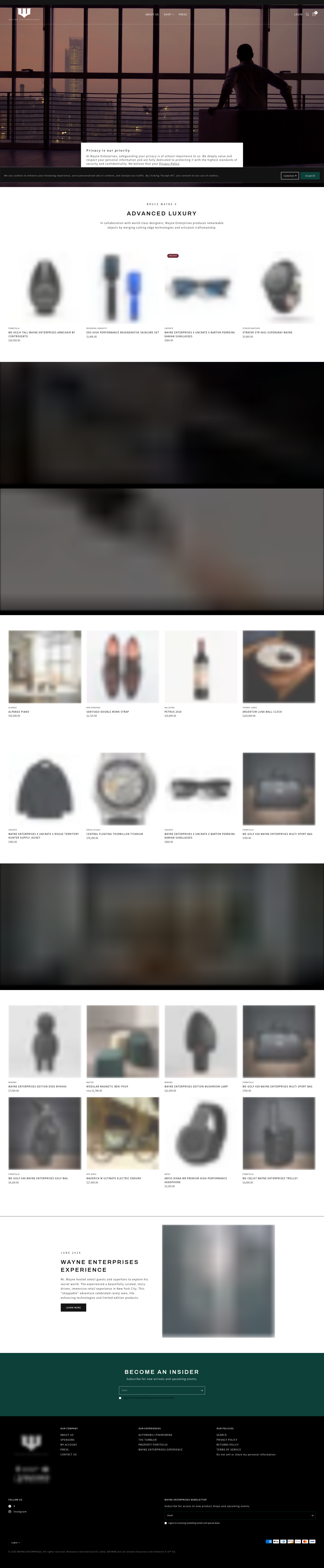 Bruce Wayne XShop Official Bruce Wayne Exclusives. Connecting connoisseurs with world-class design and innovation to reimagine mastercrafts and commerce. Access cutting-edge products and unparalleled services through an immersed lifestyle shopping experiences in the essence of Gotham's favorite son.PNGPDF