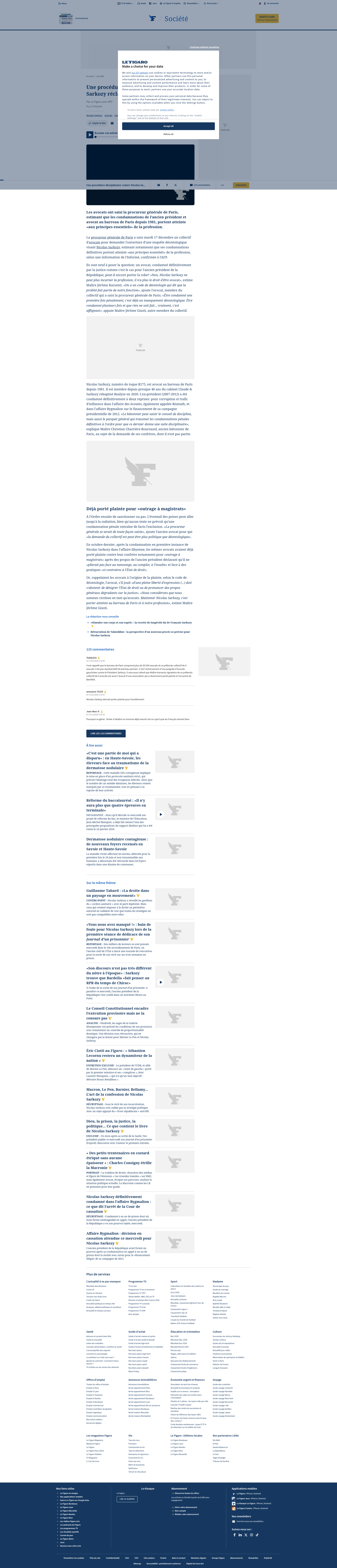 Une procédure disciplinaire contre Nicolas Sarkozy réclamée par un collectif d’avocatsLes avocats ont saisi la procureur générale de Paris, estimant que les condamnations de l’ancien président et avocat au barreau de Paris depuis 1981, portent atteinte «aux principes essentiels» de la profession.PNGPDF