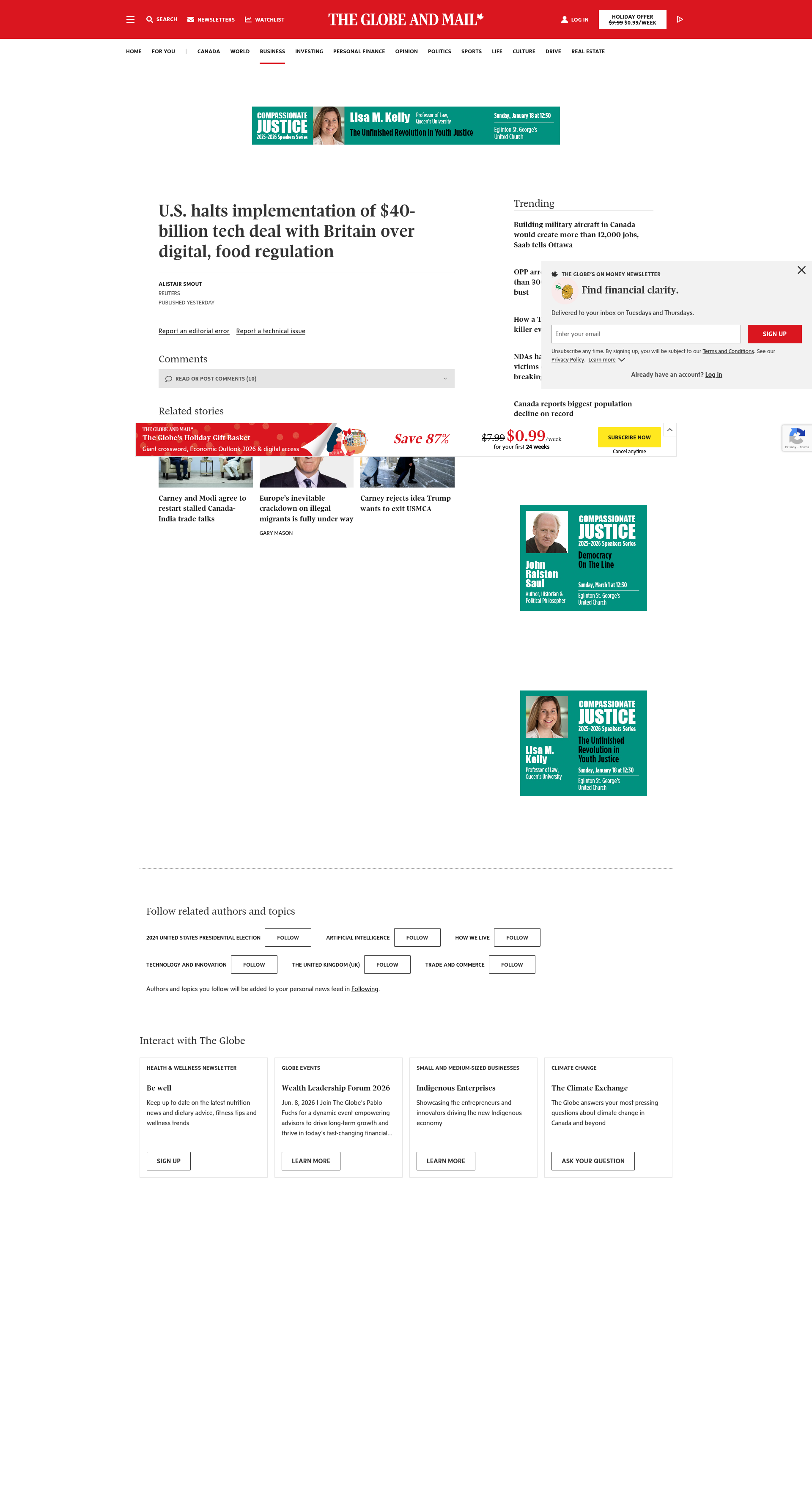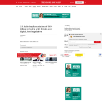 U.S. halts implementation of $40-billion tech deal with Britain over digital, food regulationThe countries had reached a deal covering AI, quantum computing and nuclear energy during Trump’s state visit in SeptemberPNGPDF