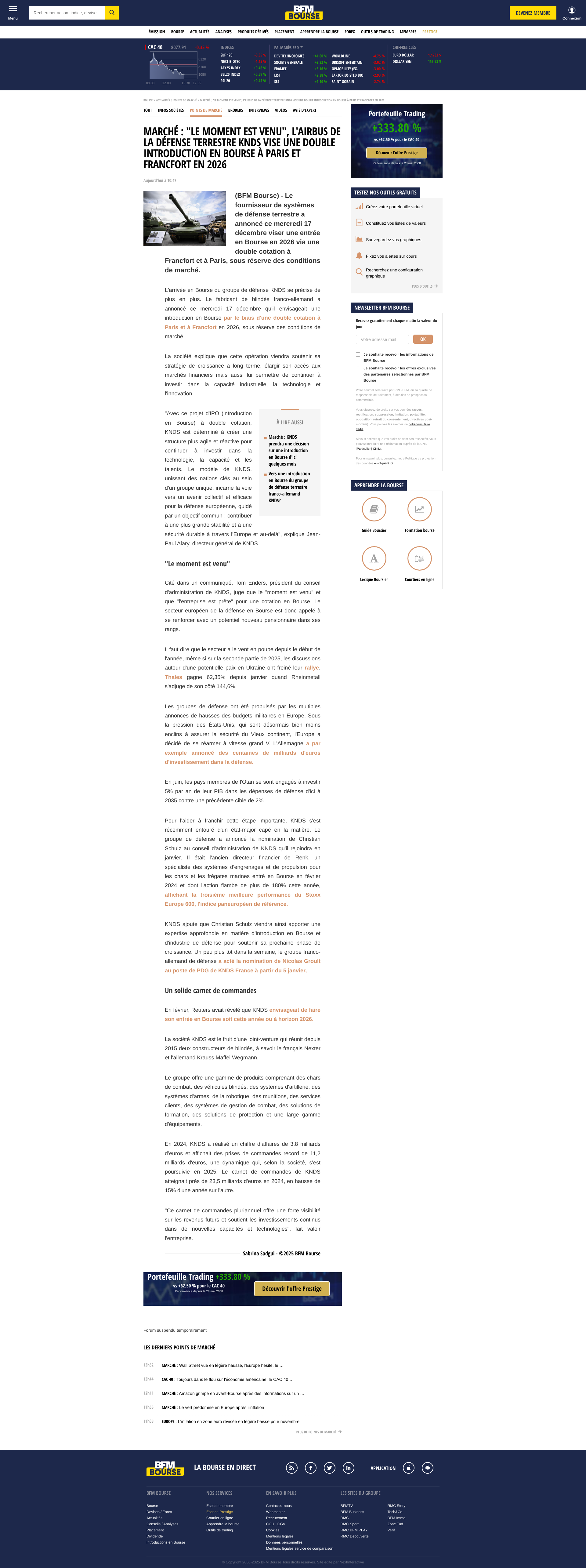 Marché : (BFM Bourse) - Le fournisseur de systèmes de défense terrestre a annoncé ce mercredi 17 décembre viser une entrée en Bourse en 2026 via une double …PNGPDF