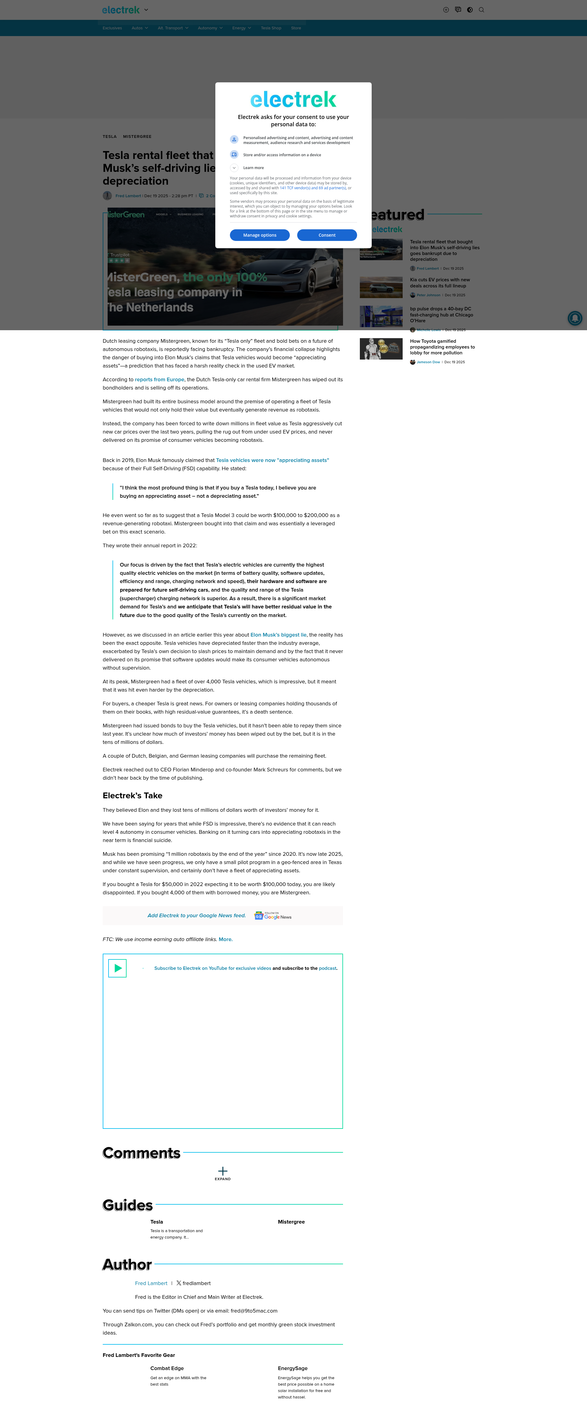 Tesla rental fleet that bought into Elon Musk's self-driving lies goes bankrupt due to depreciationDutch leasing company Mistergreen, known for its “Tesla only” fleet and bold bets on a future of autonomous robotaxis, is...PNGPDF