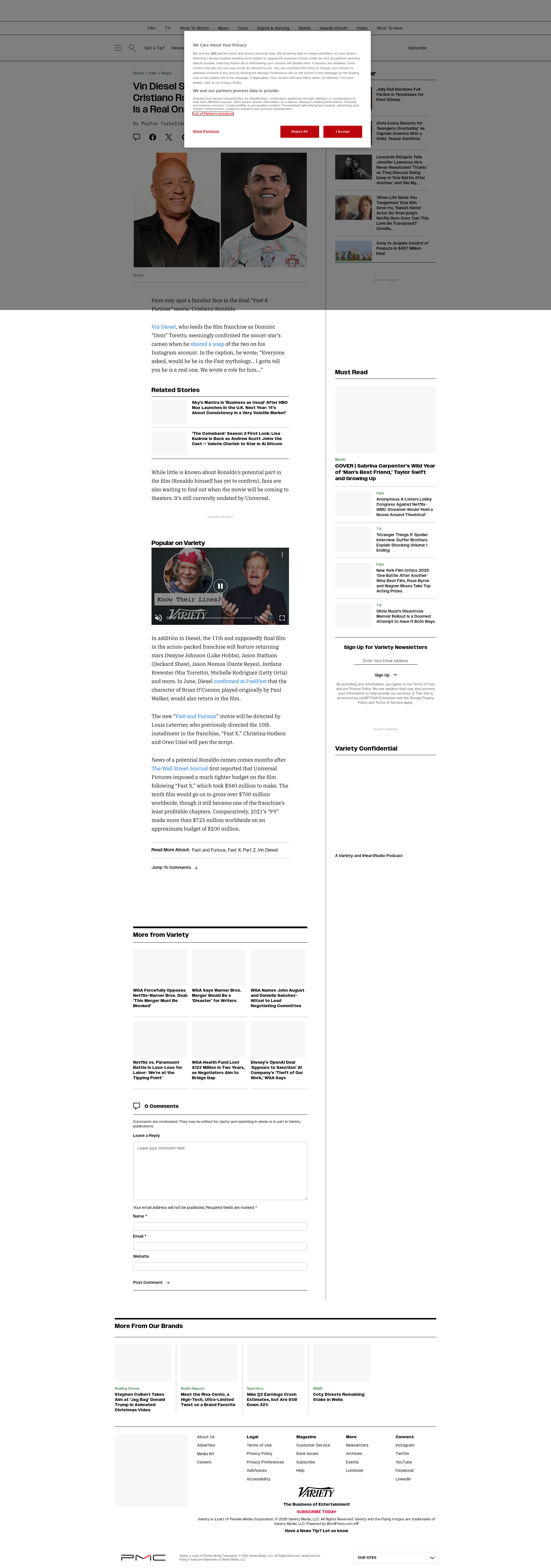 Vin Diesel Says He ‘Wrote A Role’ For Cristiano Ronaldo In ‘Fast X: Part 2’: ‘He Is a Real One’ Vin Diesel says he 'wrote a role' for Cristiano Ronaldo in the final 'Fast and Furious' moive, 'Fast X: Part 2.'PNGPDF