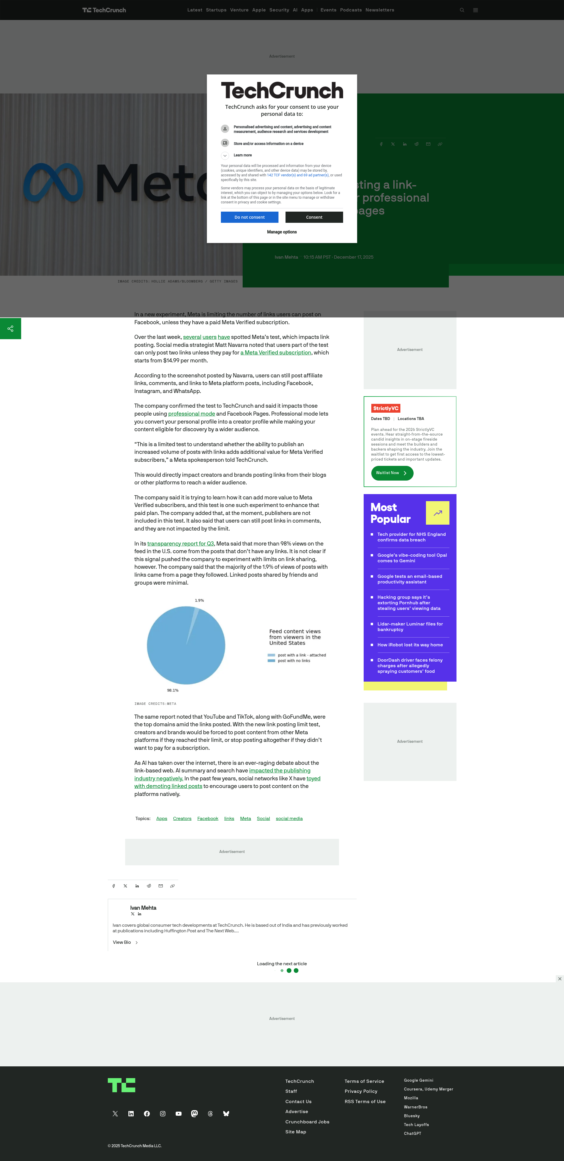 Facebook is testing a link-posting limit for professional accounts and pages | TechCrunchMeta said that the test impacts professional accounts and pages on Facebook.PNGPDF